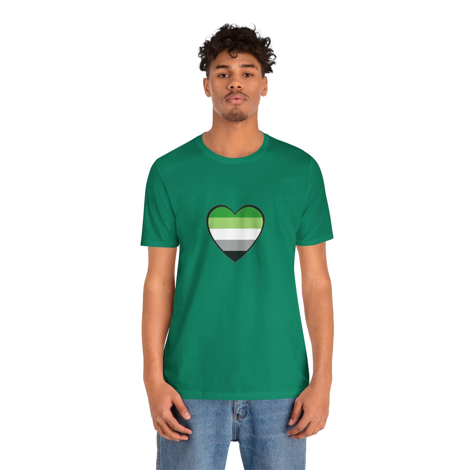 Whether you're out and proud, still exploring, or simply want a way to represent aromantic pride, this minimalist aromantic flag heart tee blends fashion with identity—and lets you take up space, stylishly and unapologetically.