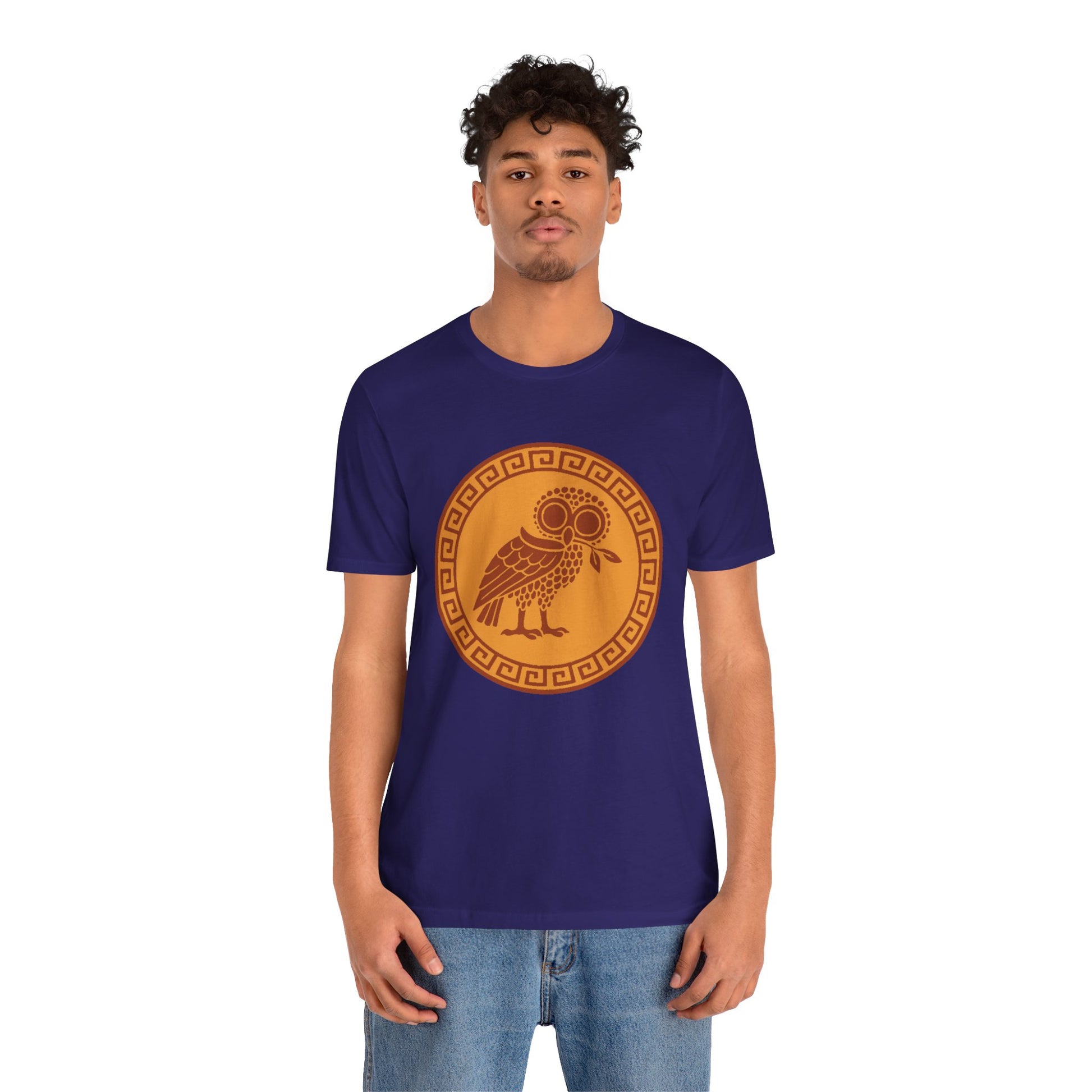 Perfect for fans of Greek myths, students of the classics, or anyone who appreciates a clever take on cultural symbols, this owl shirt brings a whisper of Mount Olympus to your daily grind. This isn't just a shirt - it's a wearable myth. Invoke Athena's wisdom and presence wherever your modern odyssey takes you. Don't be surprised if you feel a little more strategic every time you put it on.