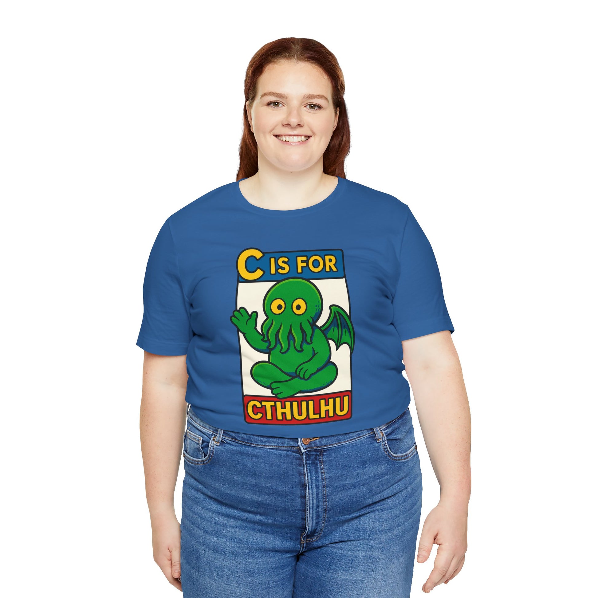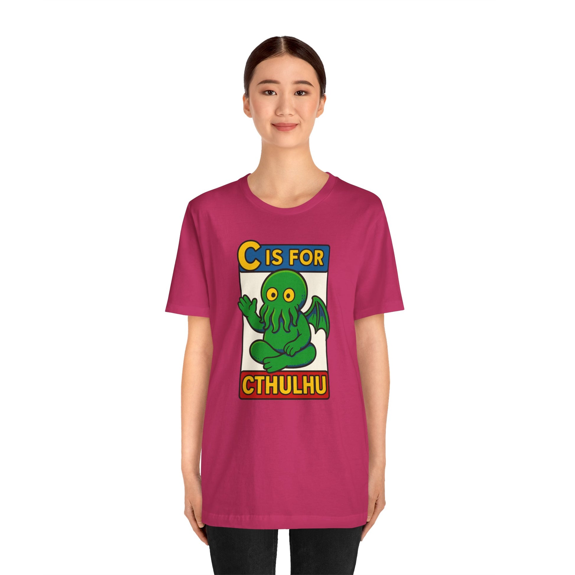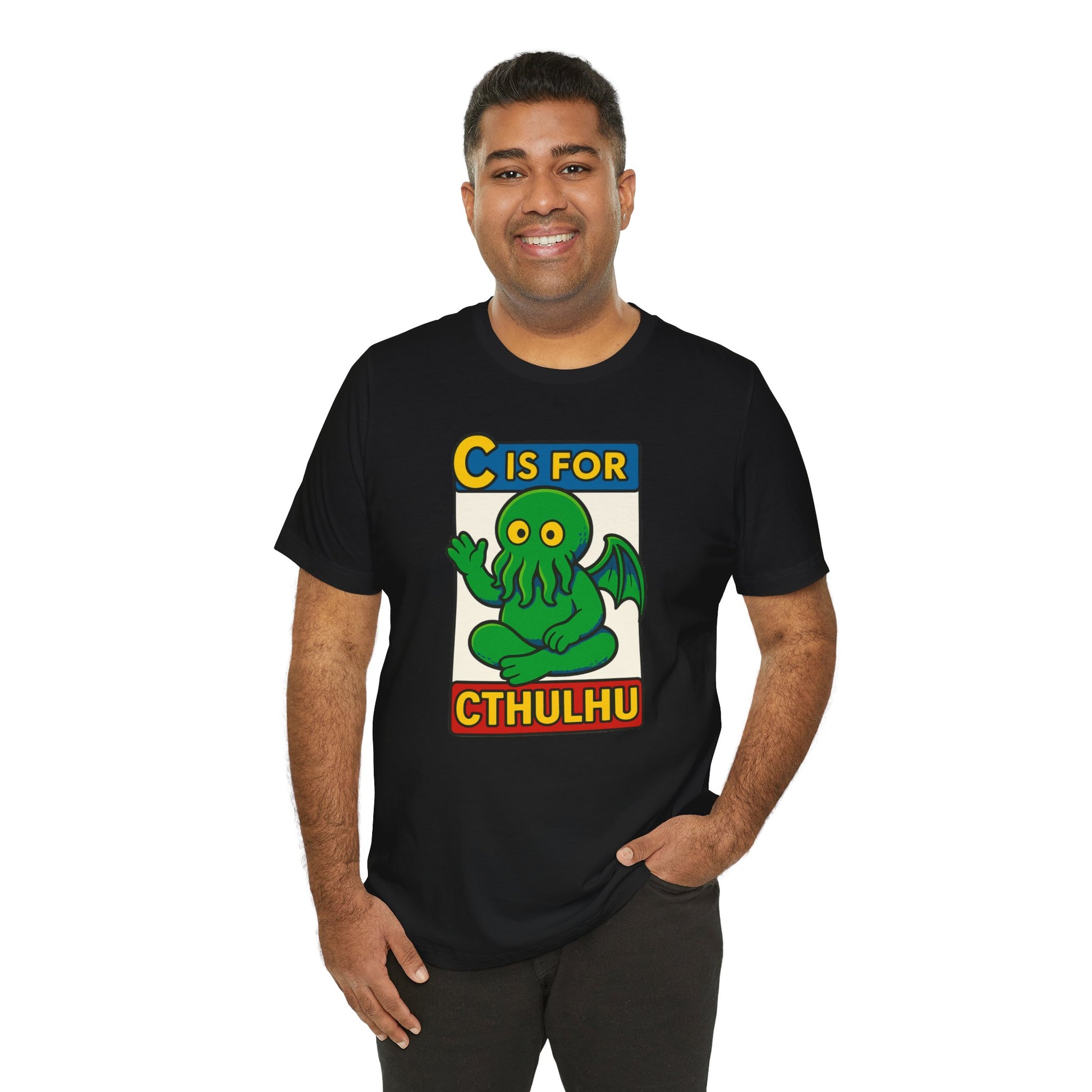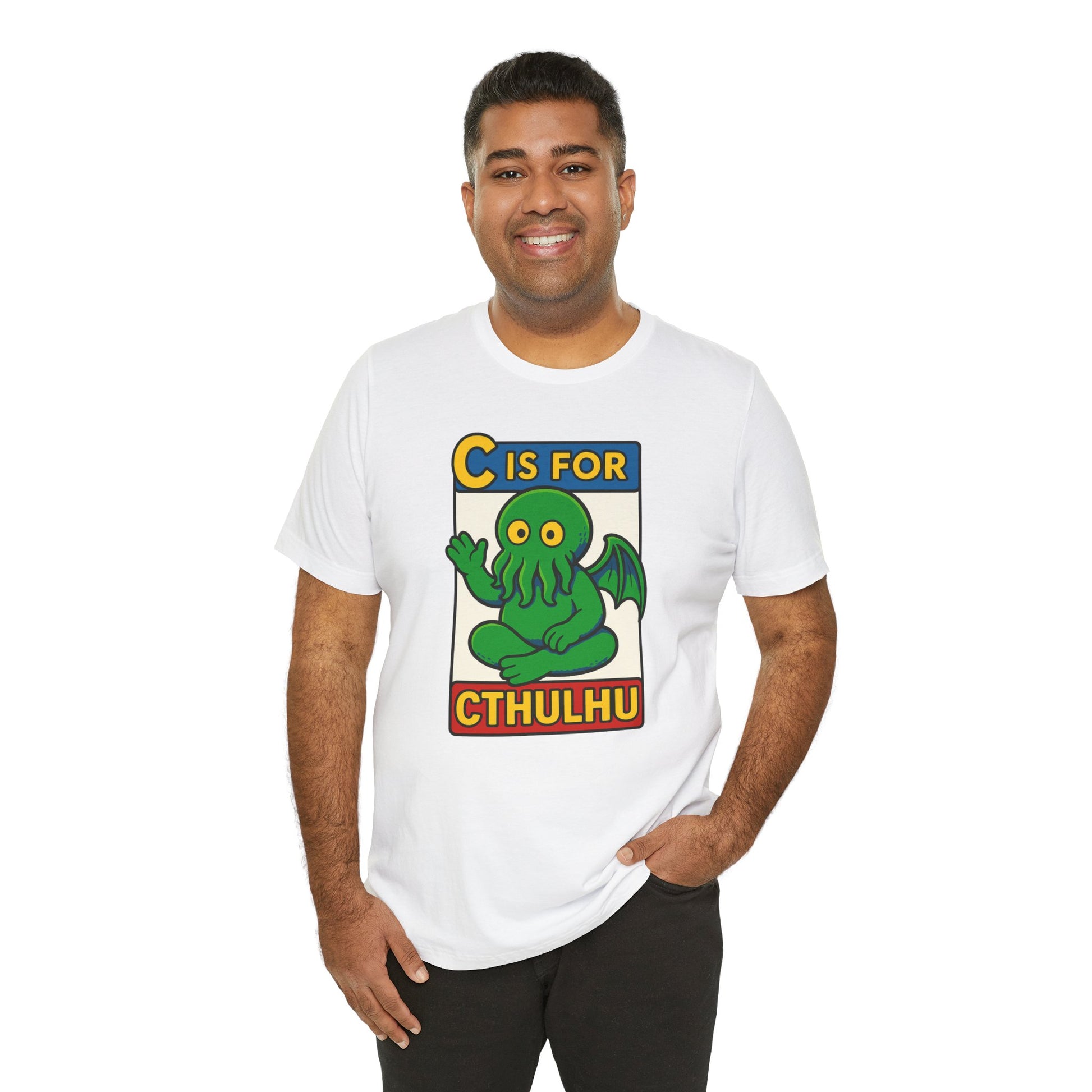Whether you're teaching the next generation of cultists their ABCs so they can read The Call of Cthulhu or simply embracing the lighter side of the void, the "C is for Cthulhu" shirt will get laughs, raise eyebrows, and maybe awaken something deep below the waves. Buy it for yourself or as a gift for a lover of the void!
