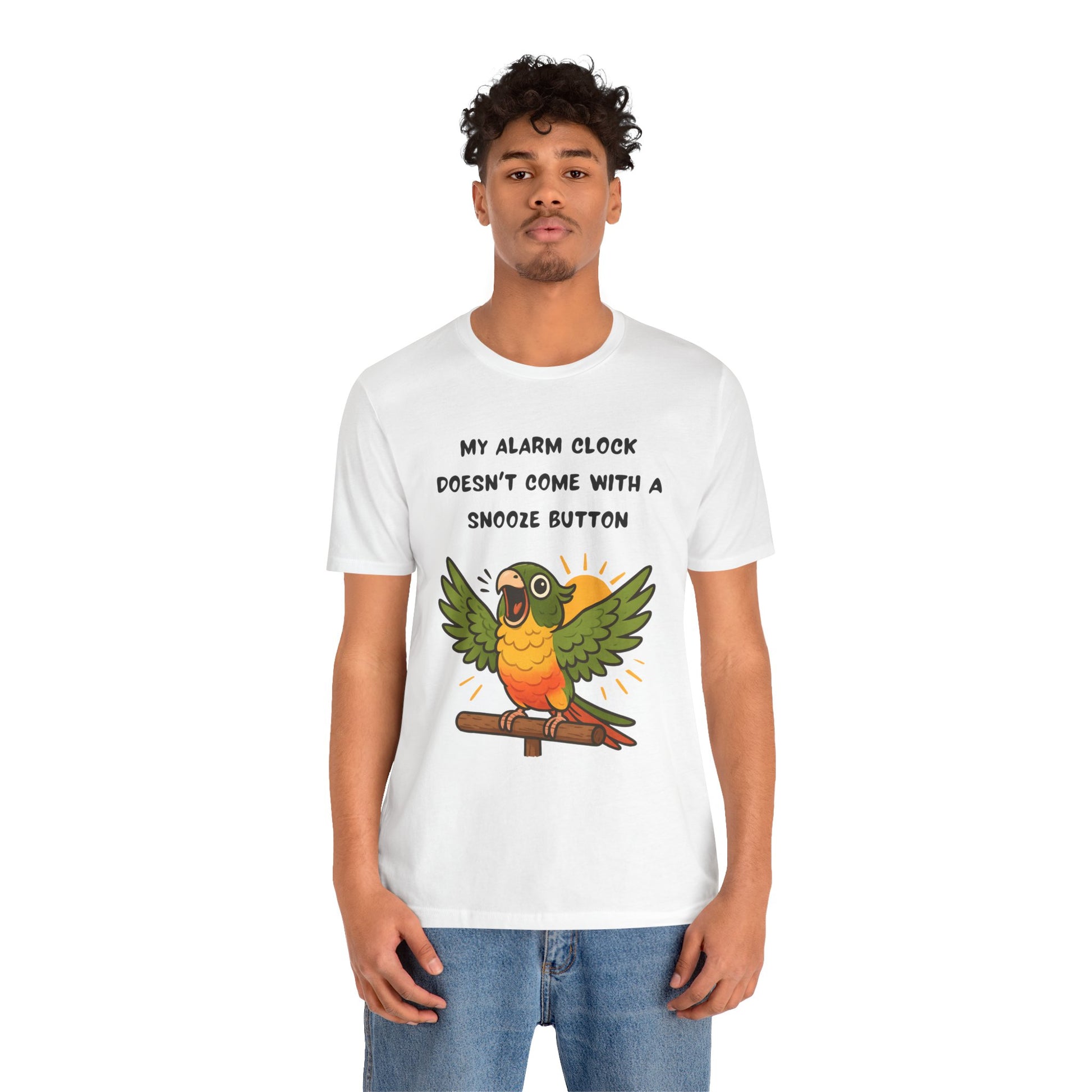 If you share your mornings with a parrot, you already know the truth — there is no snooze button. The Parrot Alarm T-Shirt turns that early-morning chaos into wearable humor for every bird parent who’s ever been jolted awake by a cheerful, screaming conure before sunrise.