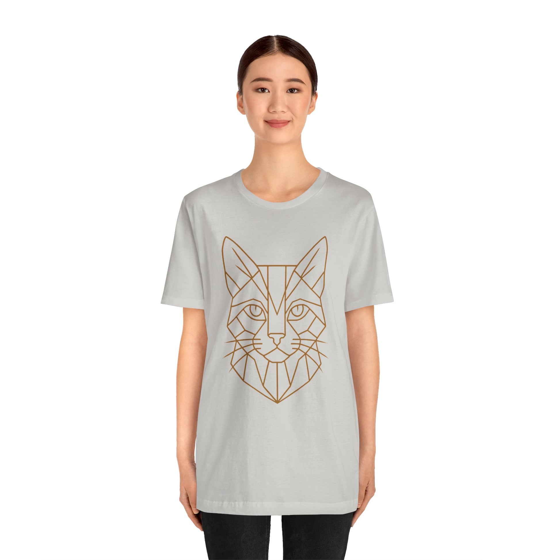Geometric Cat T-Shirt - Minimalist Line Art Tee