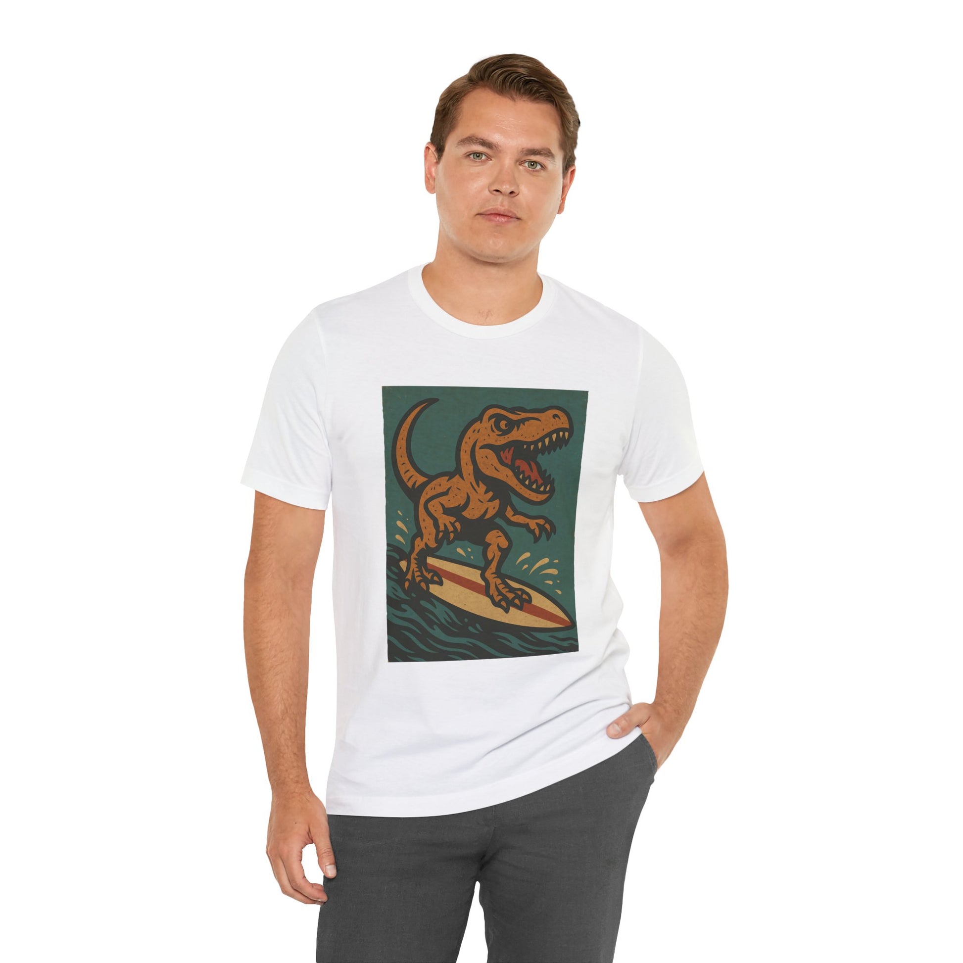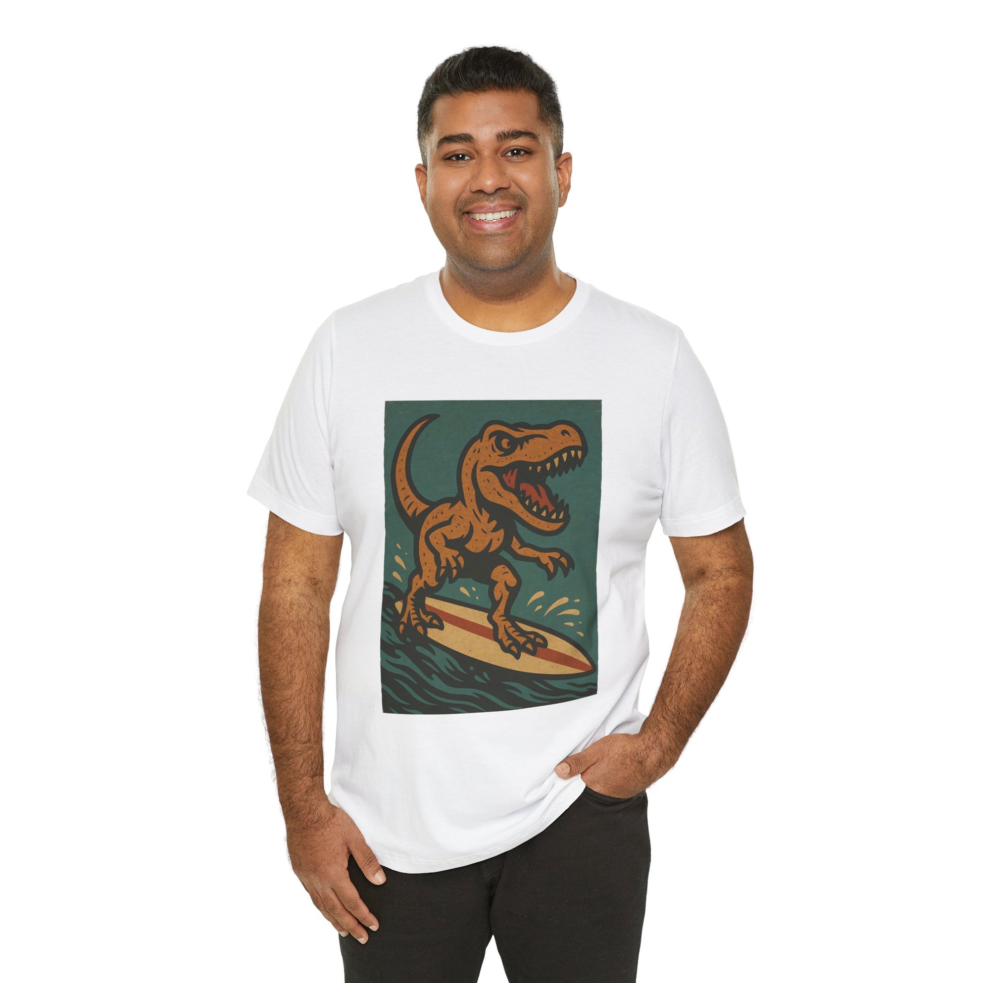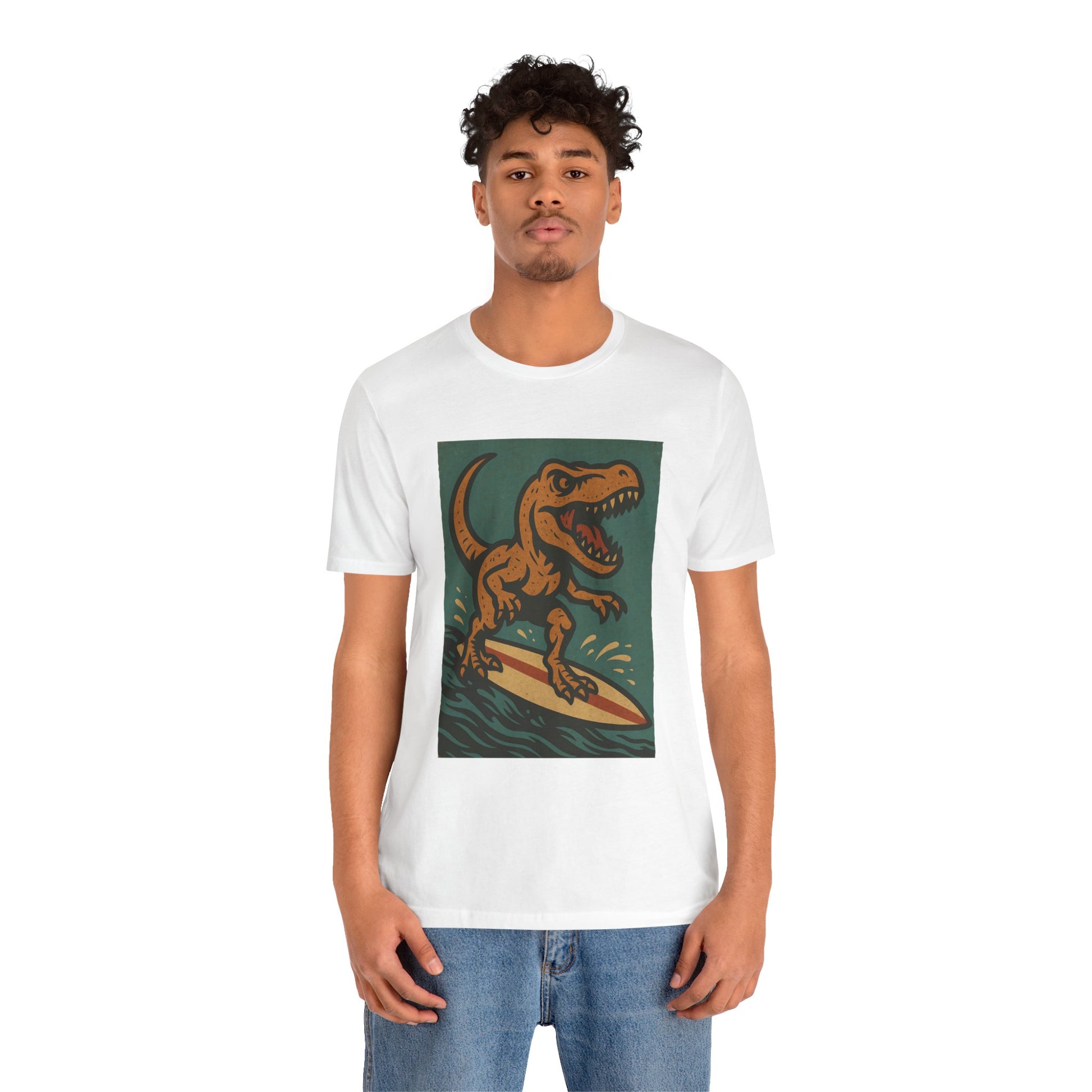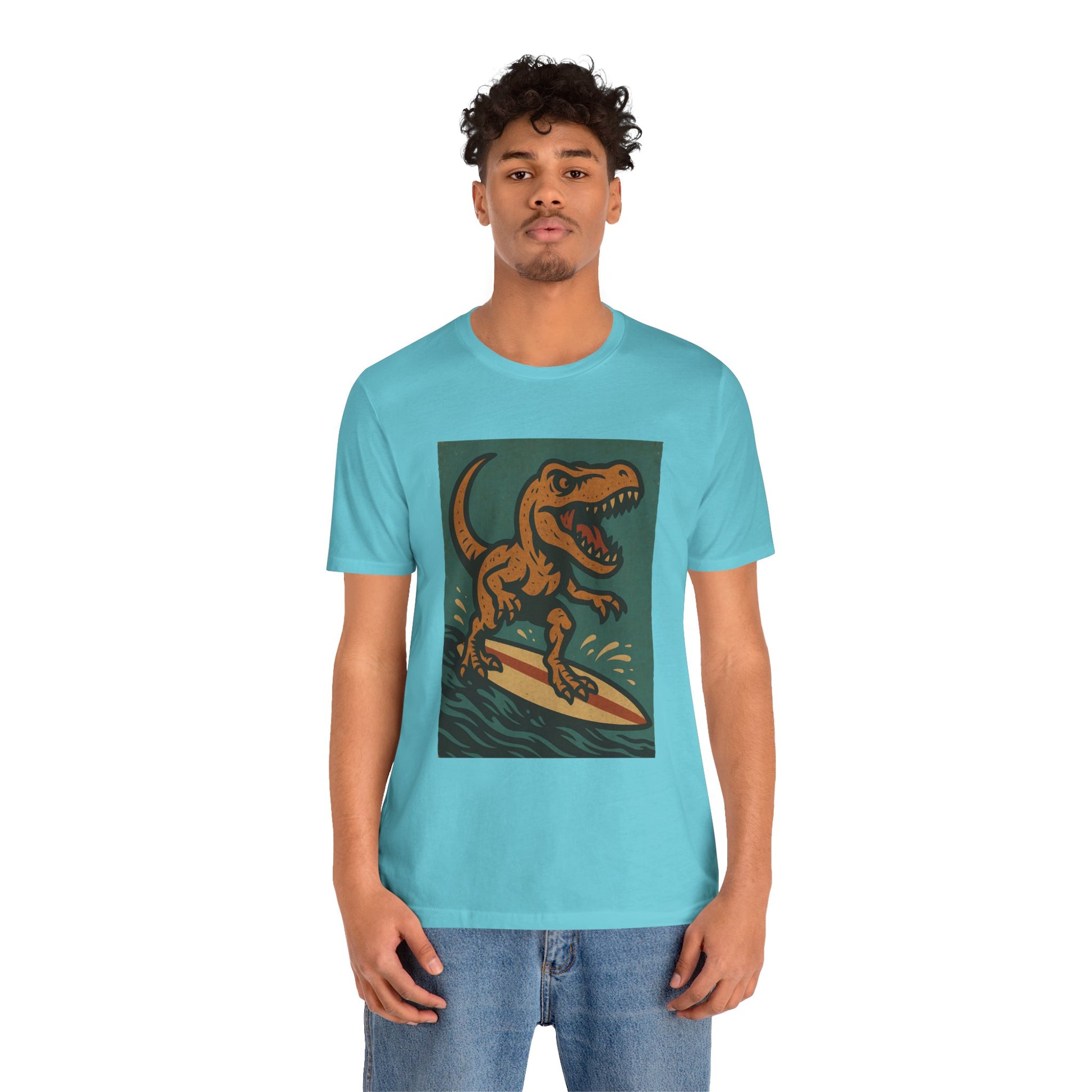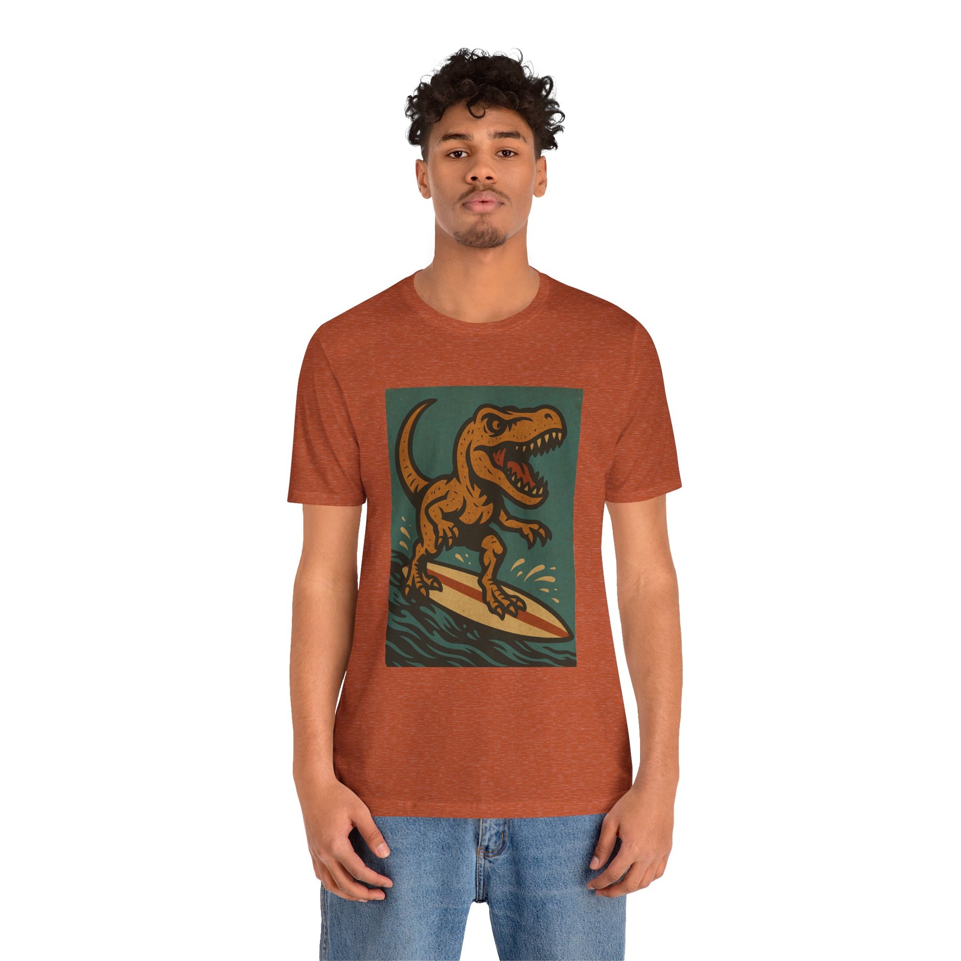 If you're on the hunt for a unique and hilarious dinosaur surfing shirt for adults, this one's got your name written in fossilized foam. It's bold, it's funny, and it's ready to ride the summer wave with you.