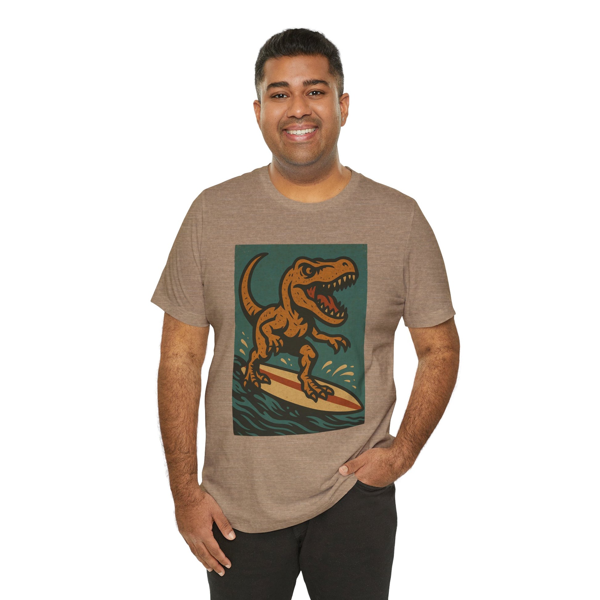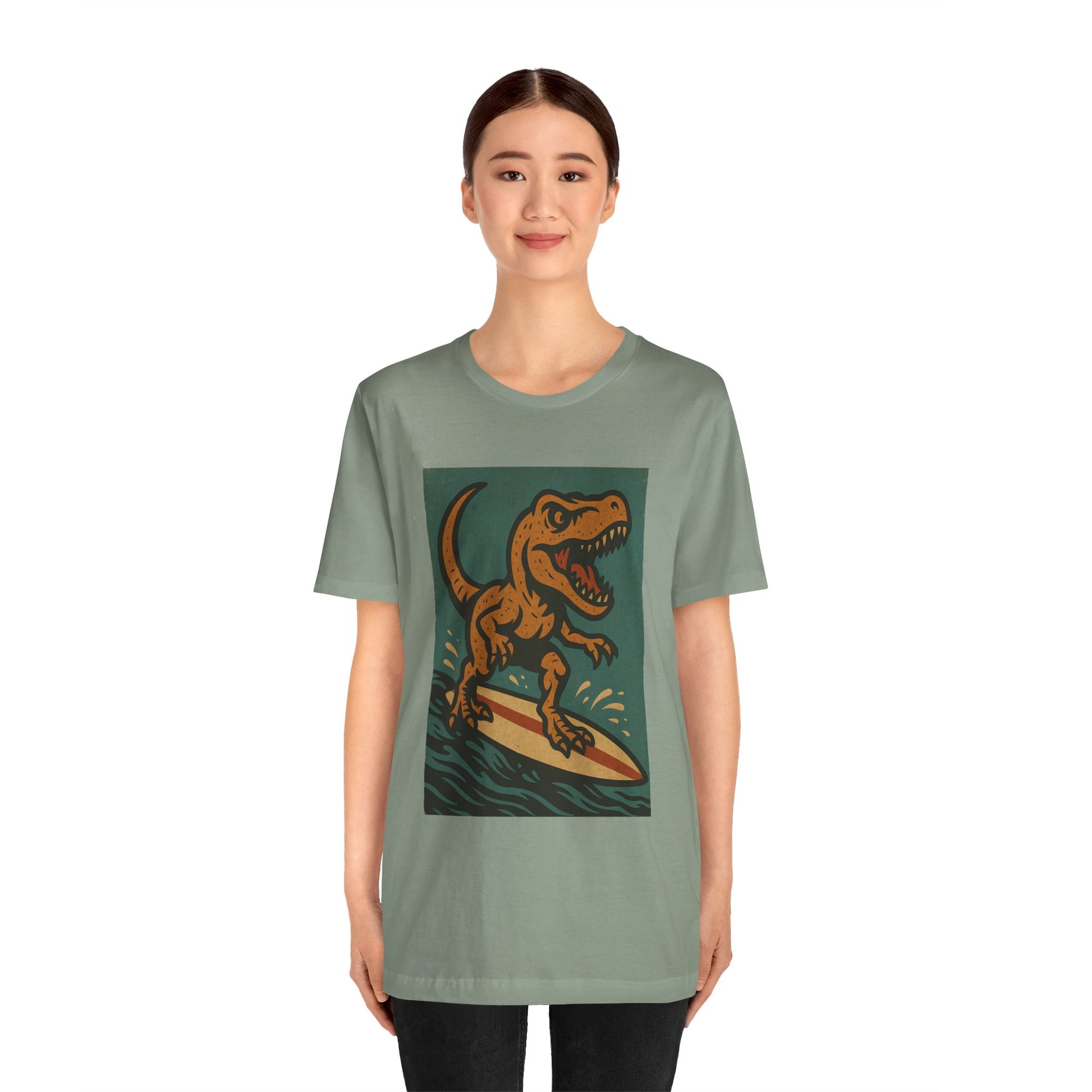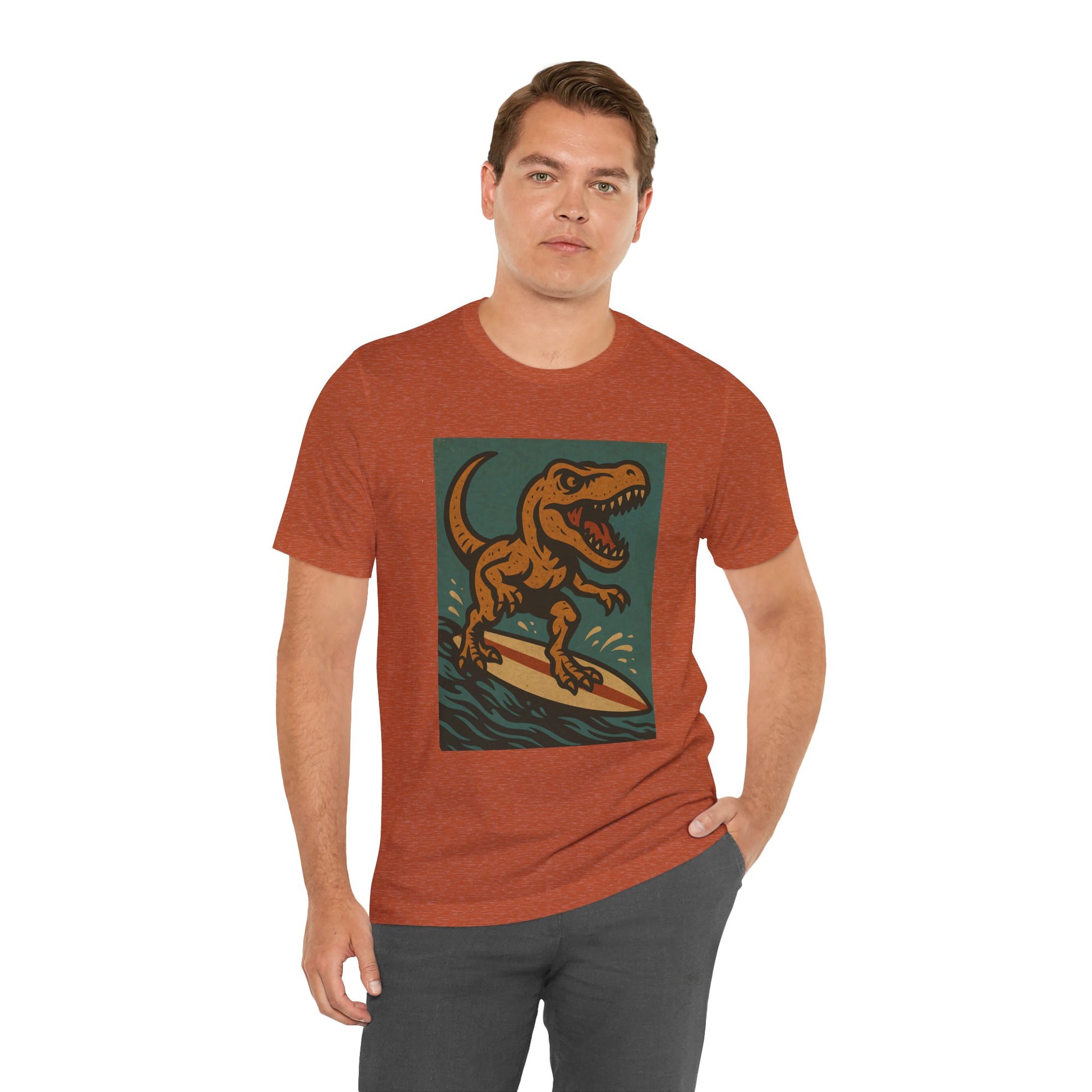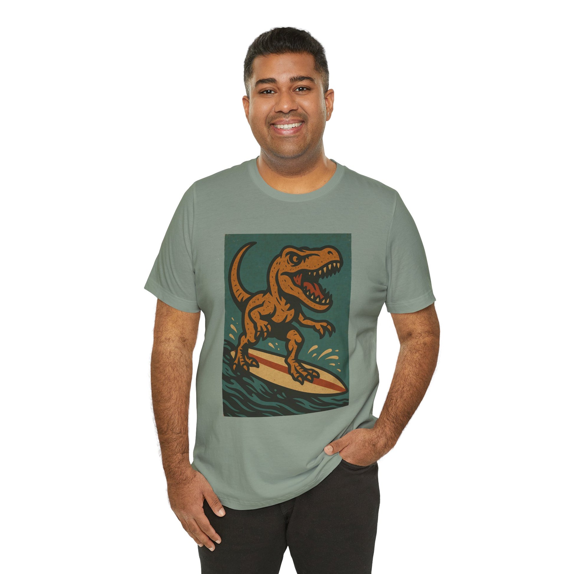 If you're on the hunt for a unique and hilarious dinosaur surfing shirt for adults, this one's got your name written in fossilized foam. It's bold, it's funny, and it's ready to ride the summer wave with you.