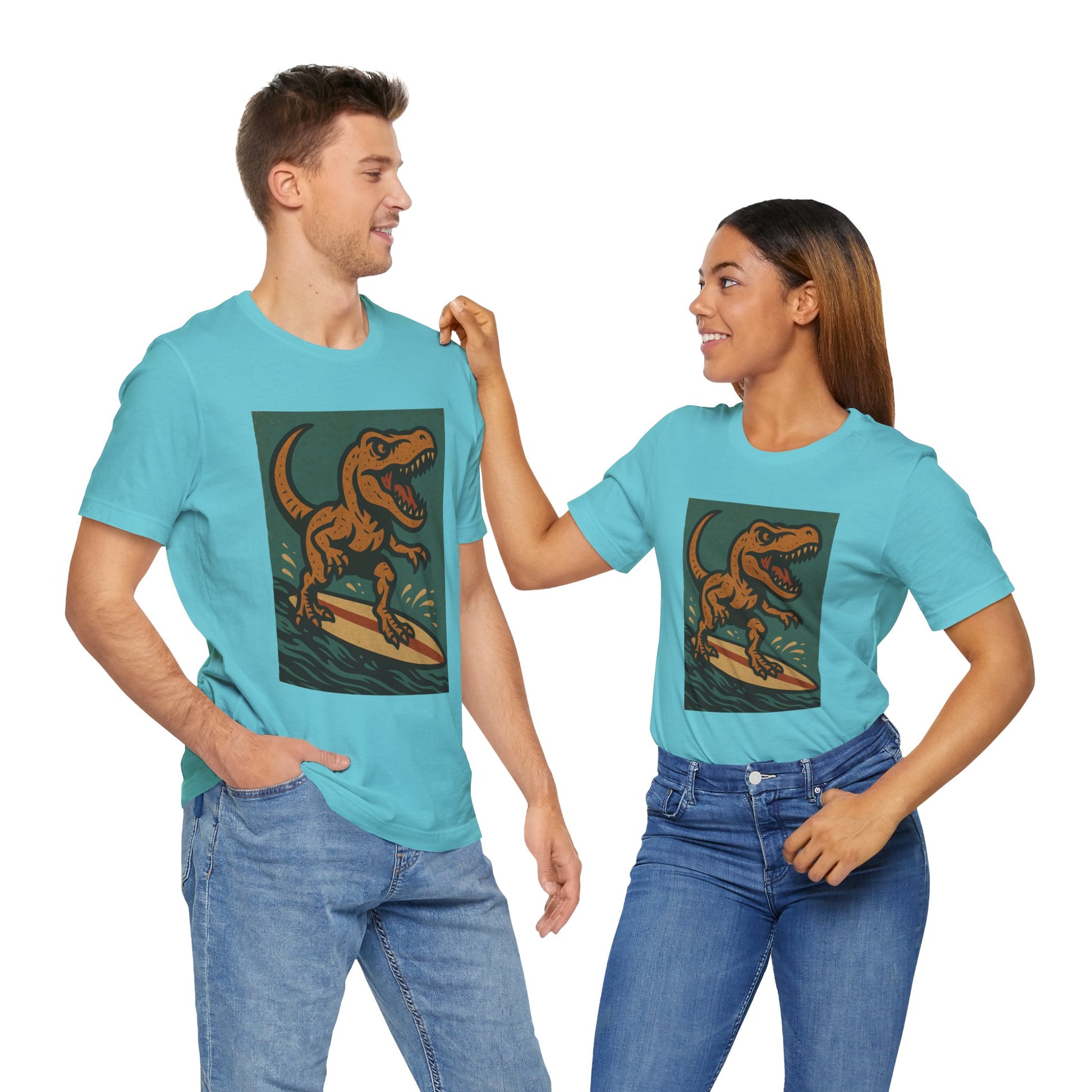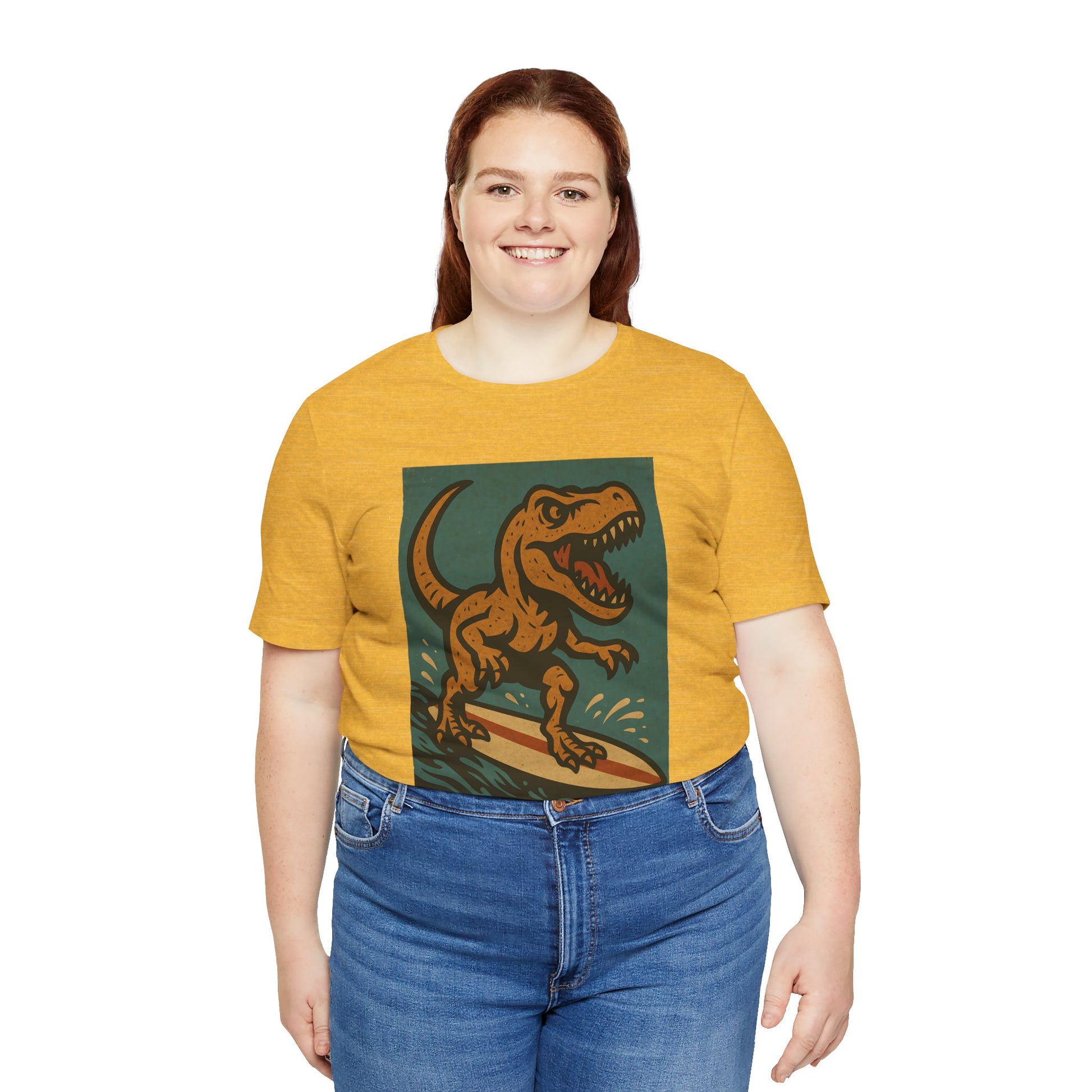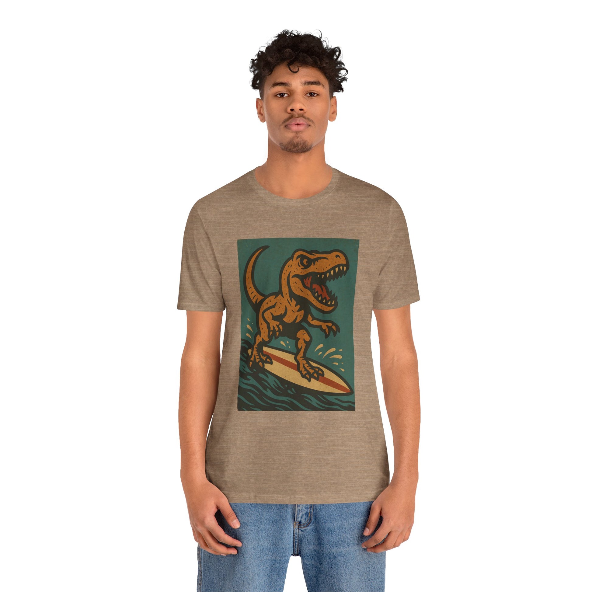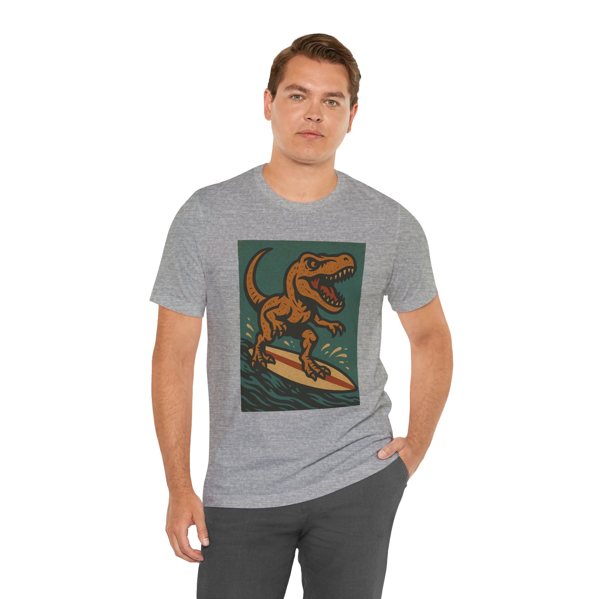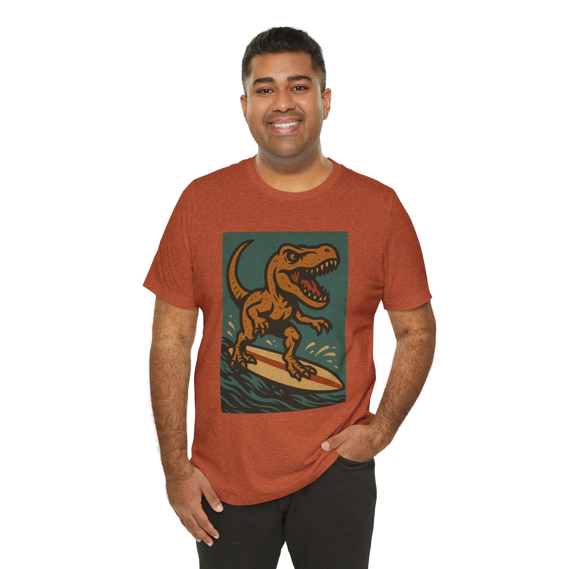 If you're on the hunt for a unique and hilarious dinosaur surfing shirt for adults, this one's got your name written in fossilized foam. It's bold, it's funny, and it's ready to ride the summer wave with you.