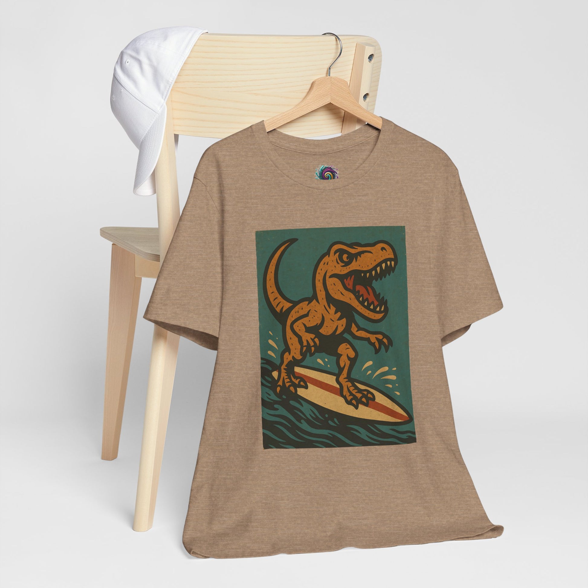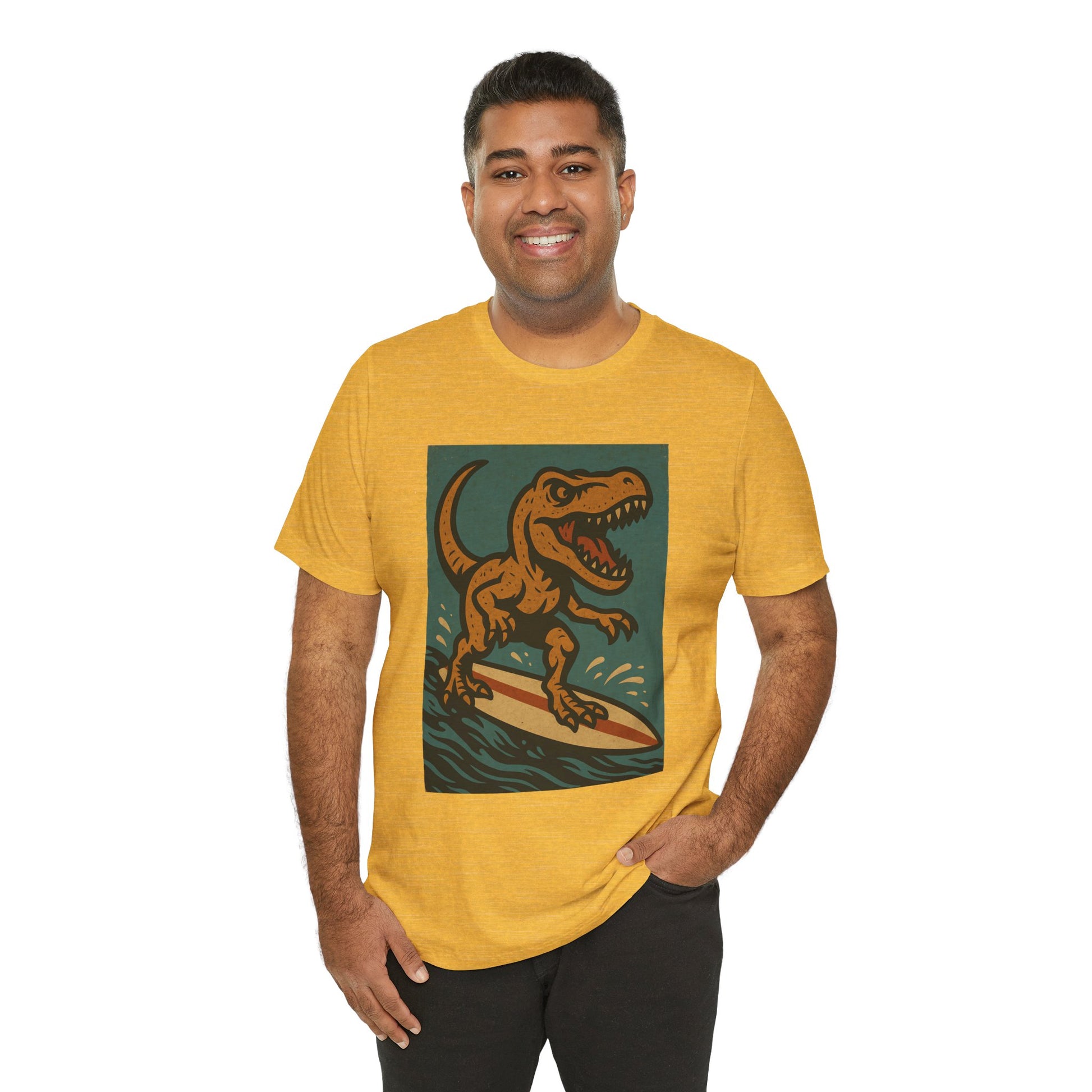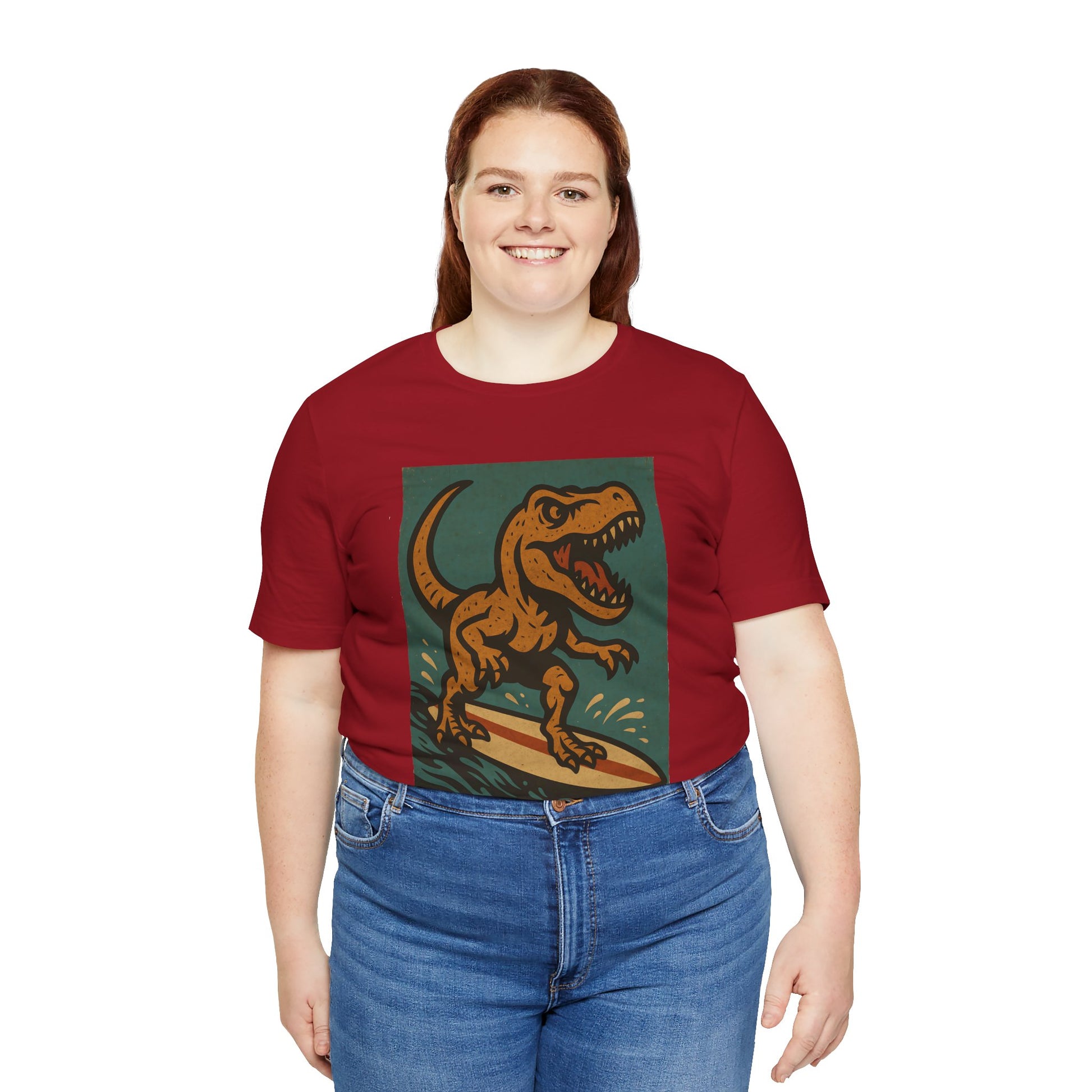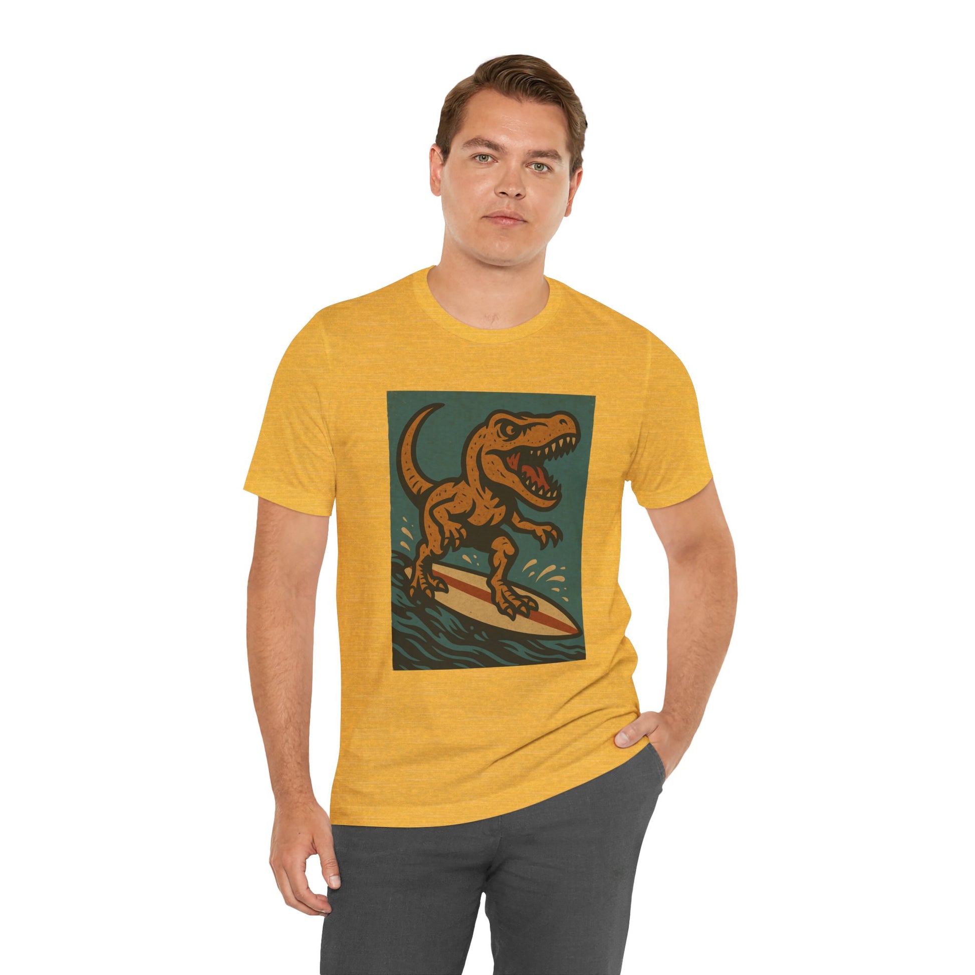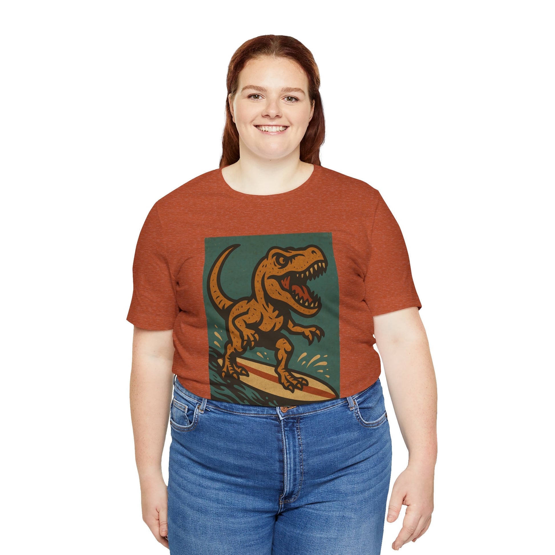 If you're on the hunt for a unique and hilarious dinosaur surfing shirt for adults, this one's got your name written in fossilized foam. It's bold, it's funny, and it's ready to ride the summer wave with you.