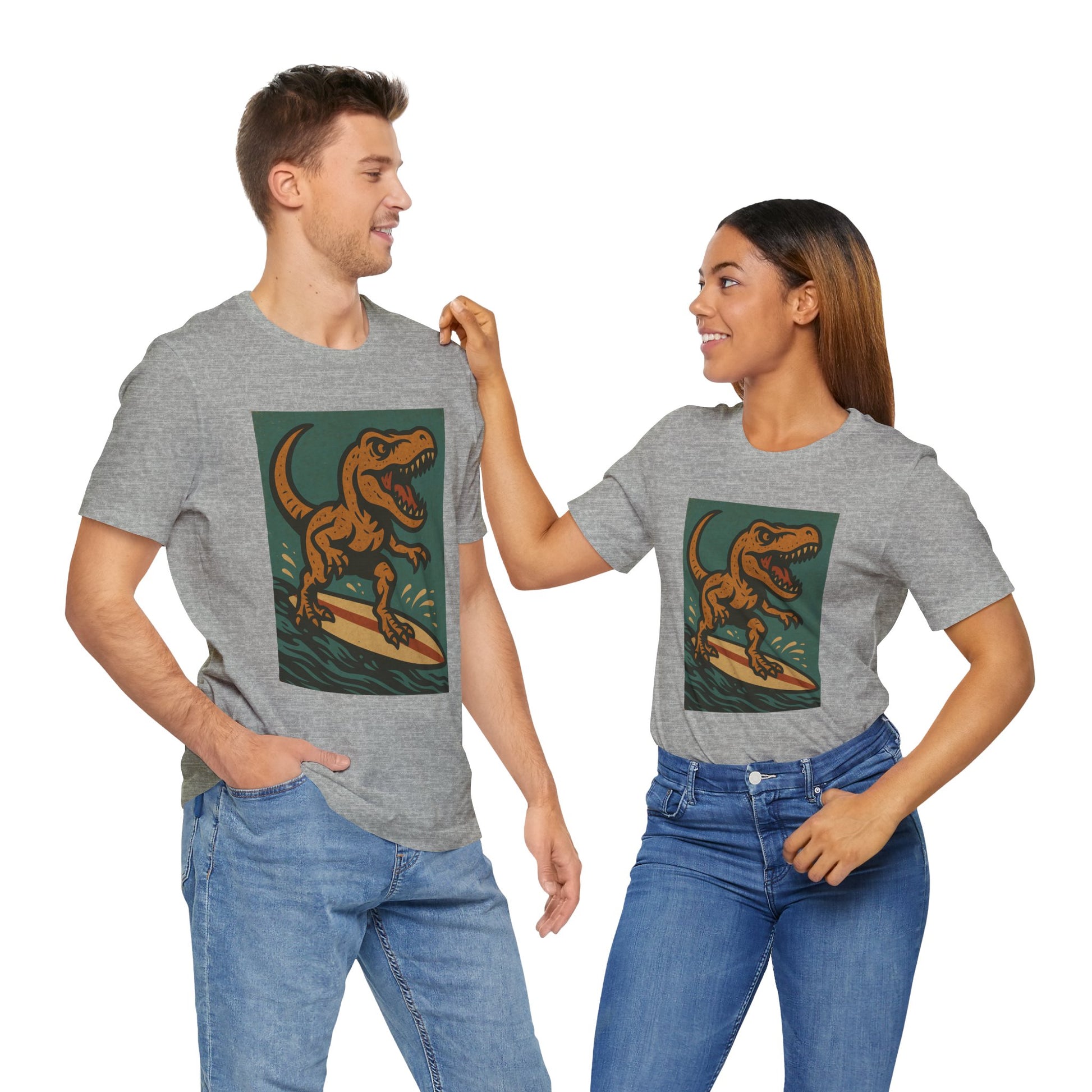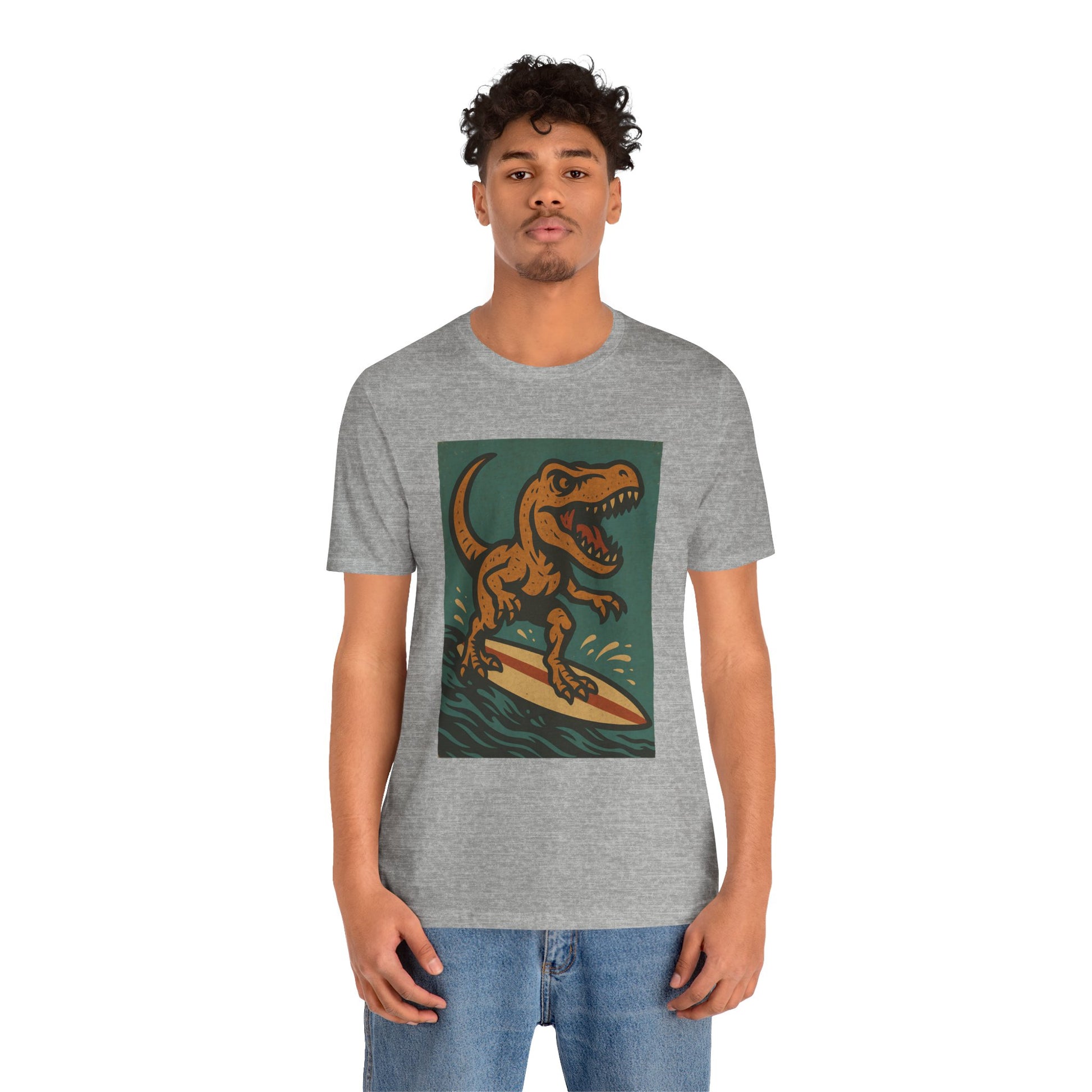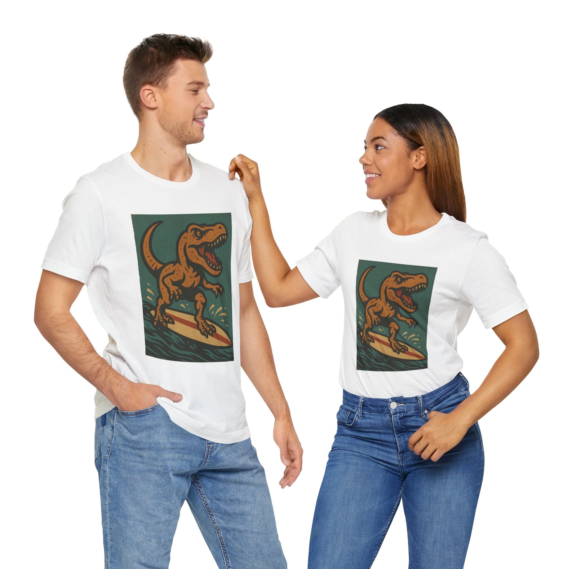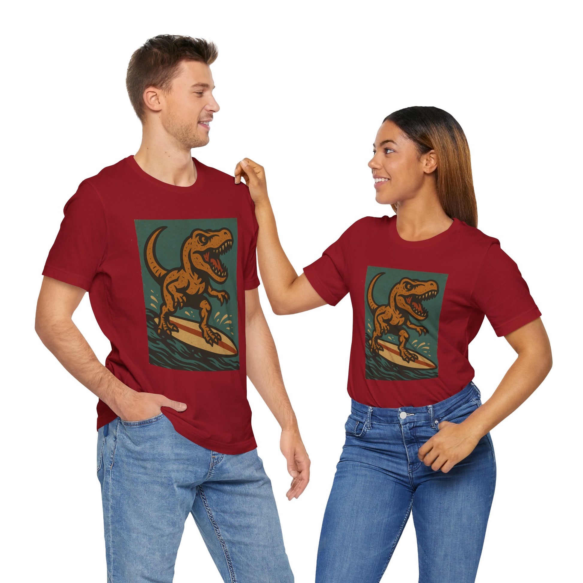 If you're on the hunt for a unique and hilarious dinosaur surfing shirt for adults, this one's got your name written in fossilized foam. It's bold, it's funny, and it's ready to ride the summer wave with you.