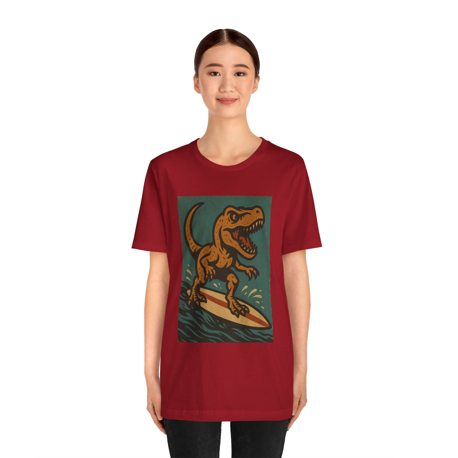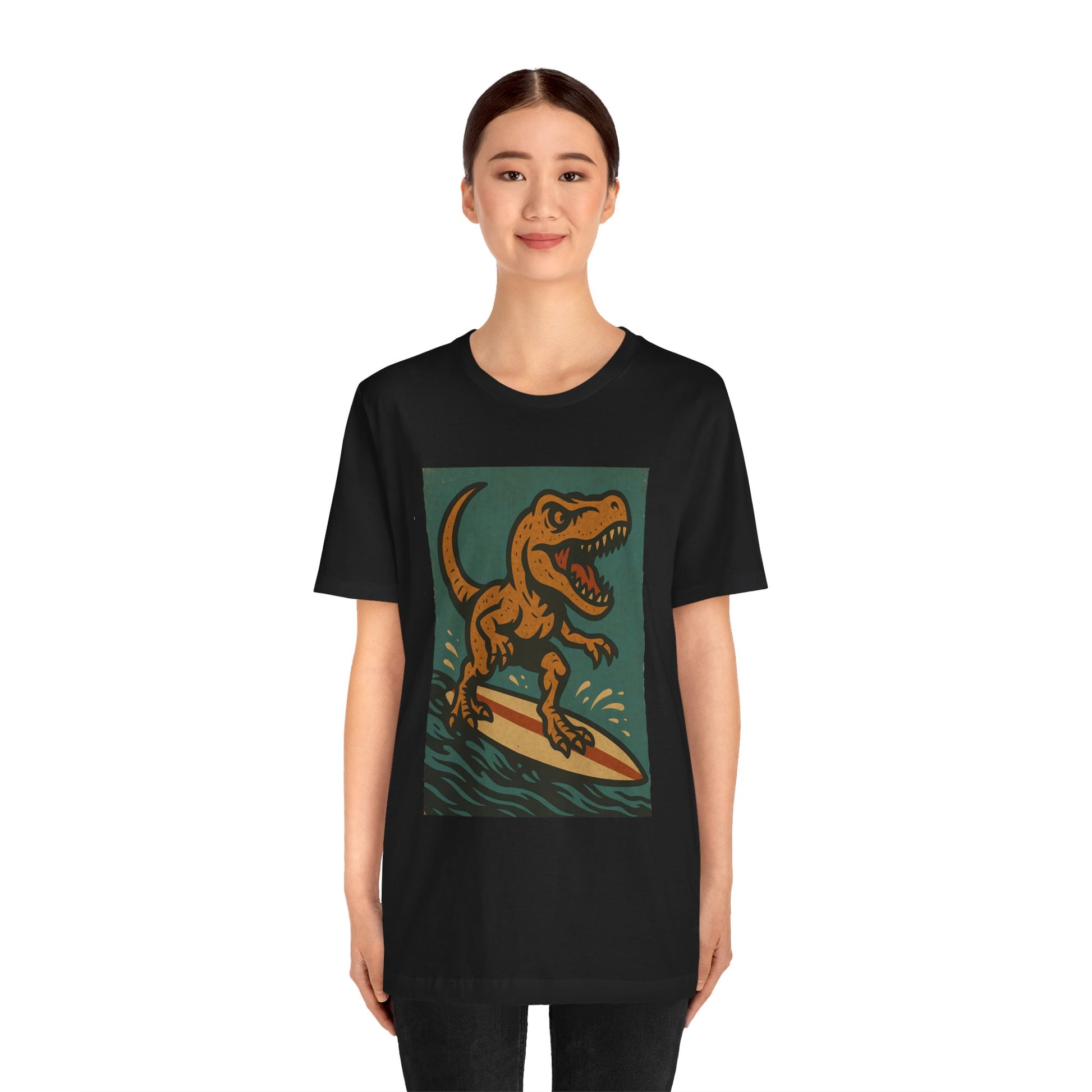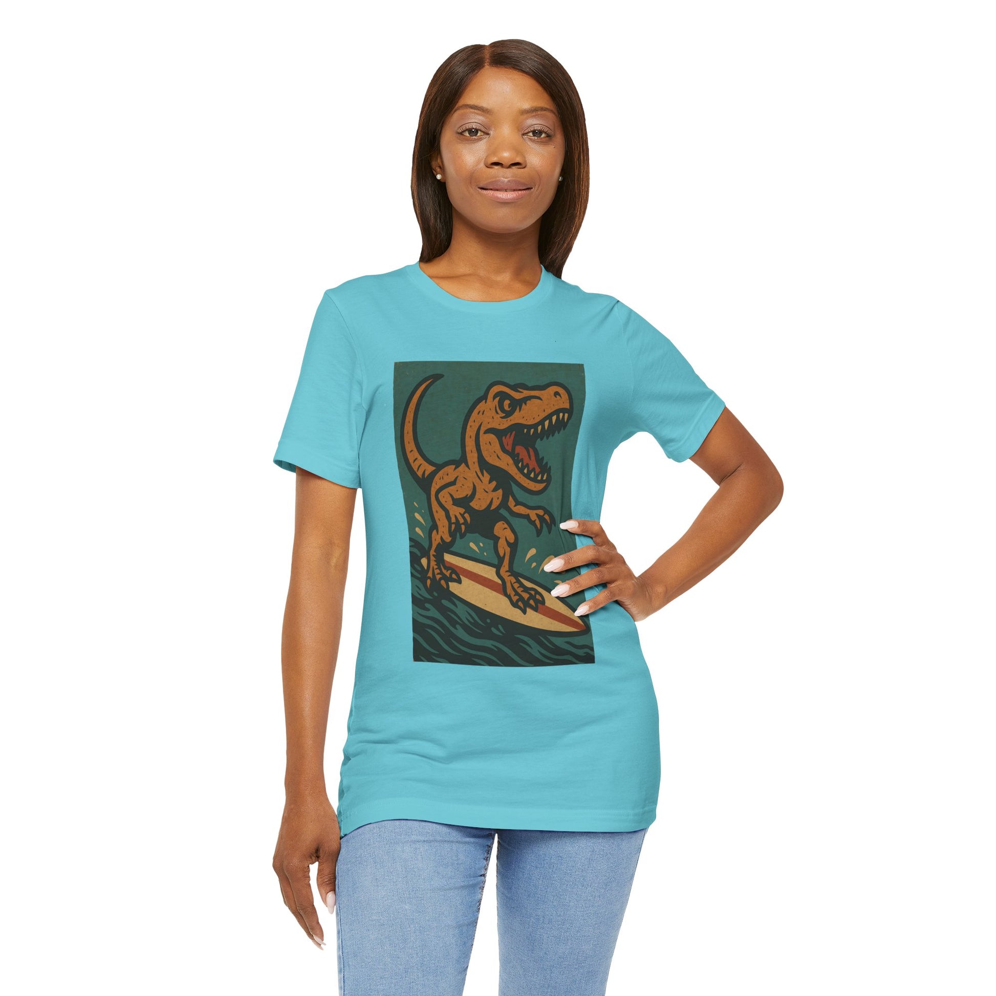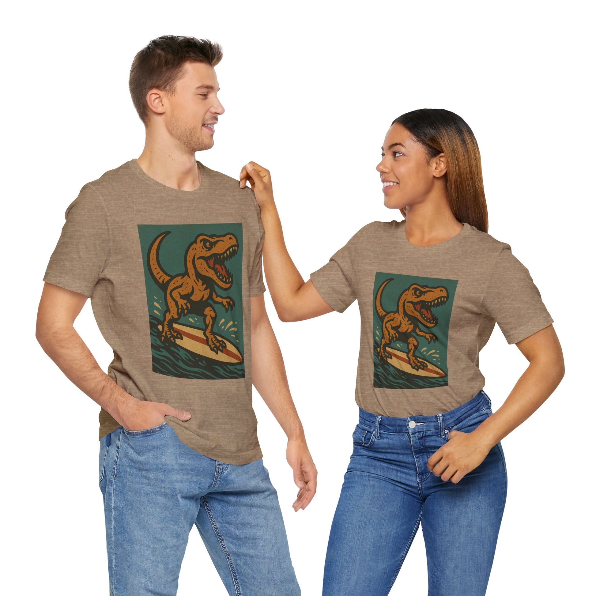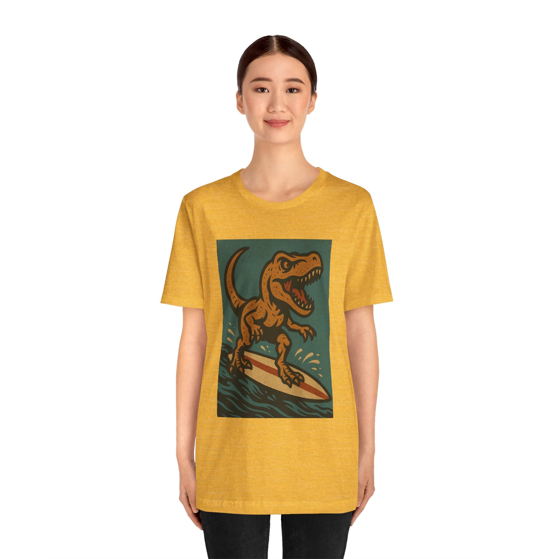 If you're on the hunt for a unique and hilarious dinosaur surfing shirt for adults, this one's got your name written in fossilized foam. It's bold, it's funny, and it's ready to ride the summer wave with you.