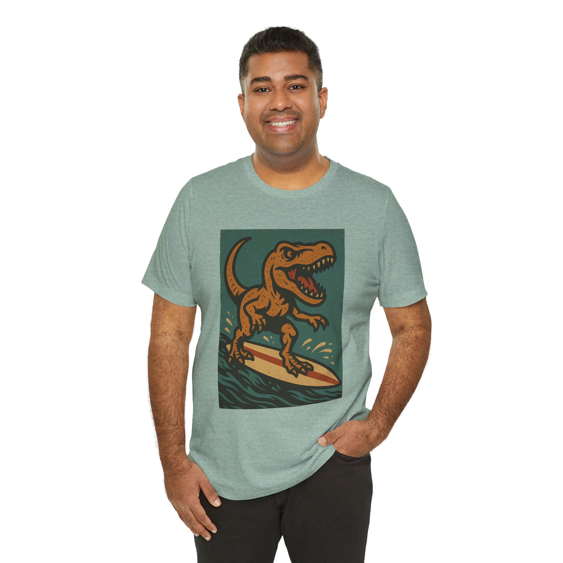 Surfing T-Rex T-Shirt – Funny Dinosaur Surfing Graphic Tee