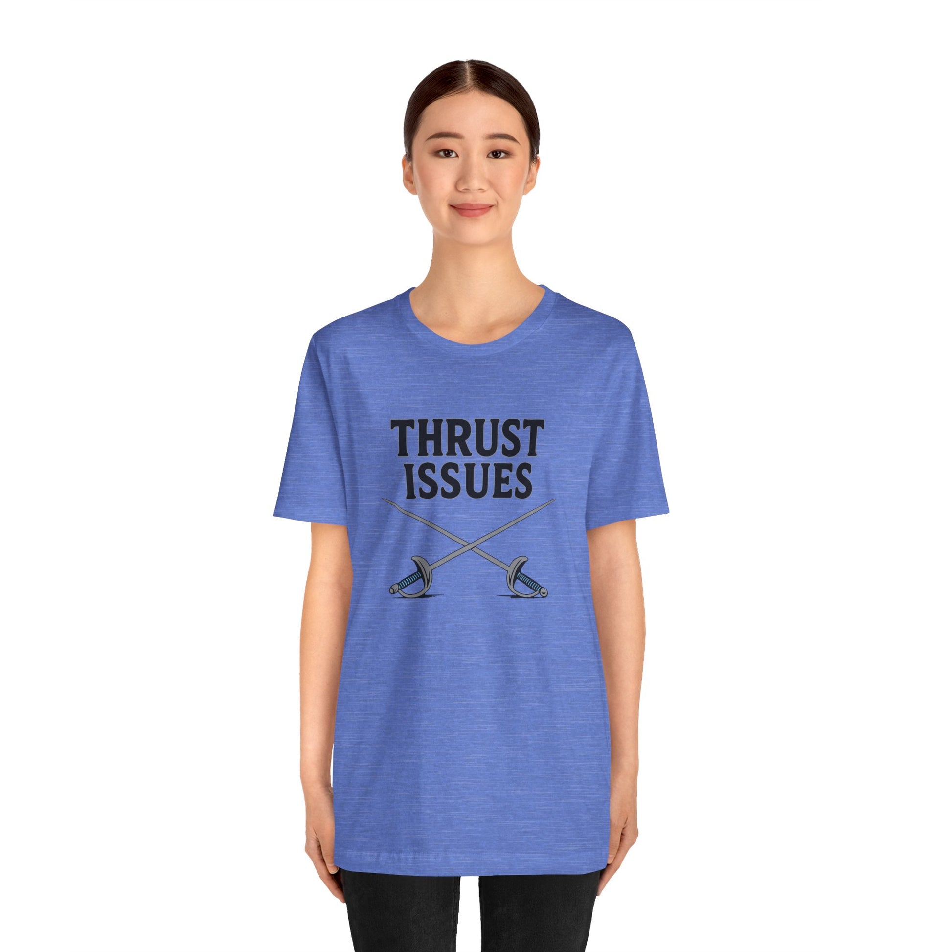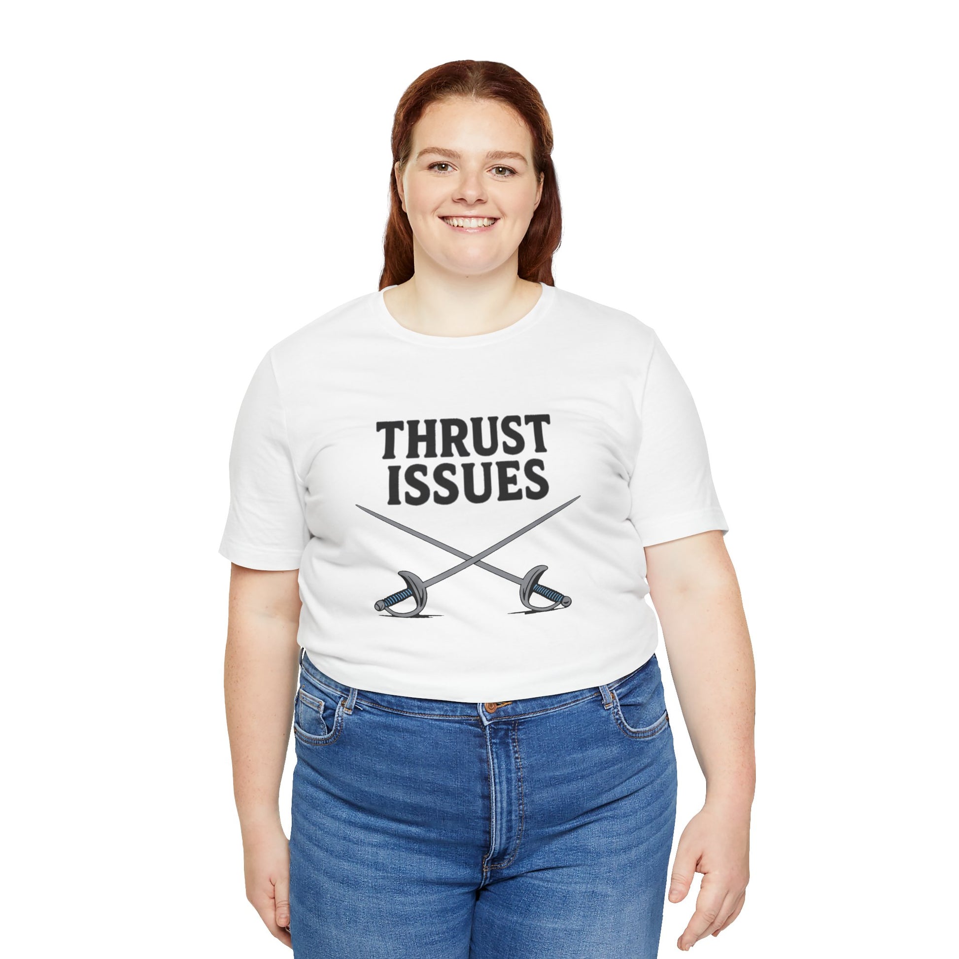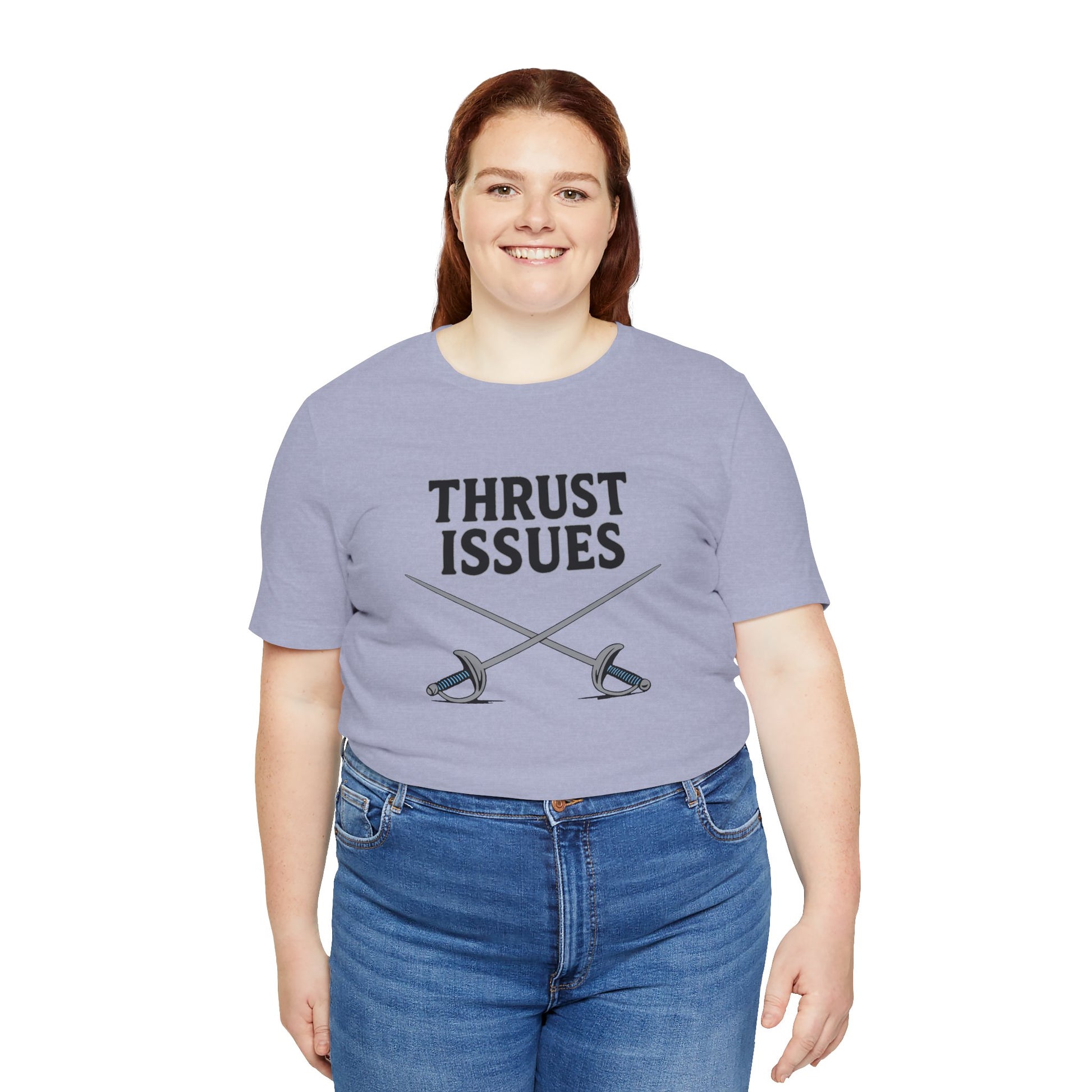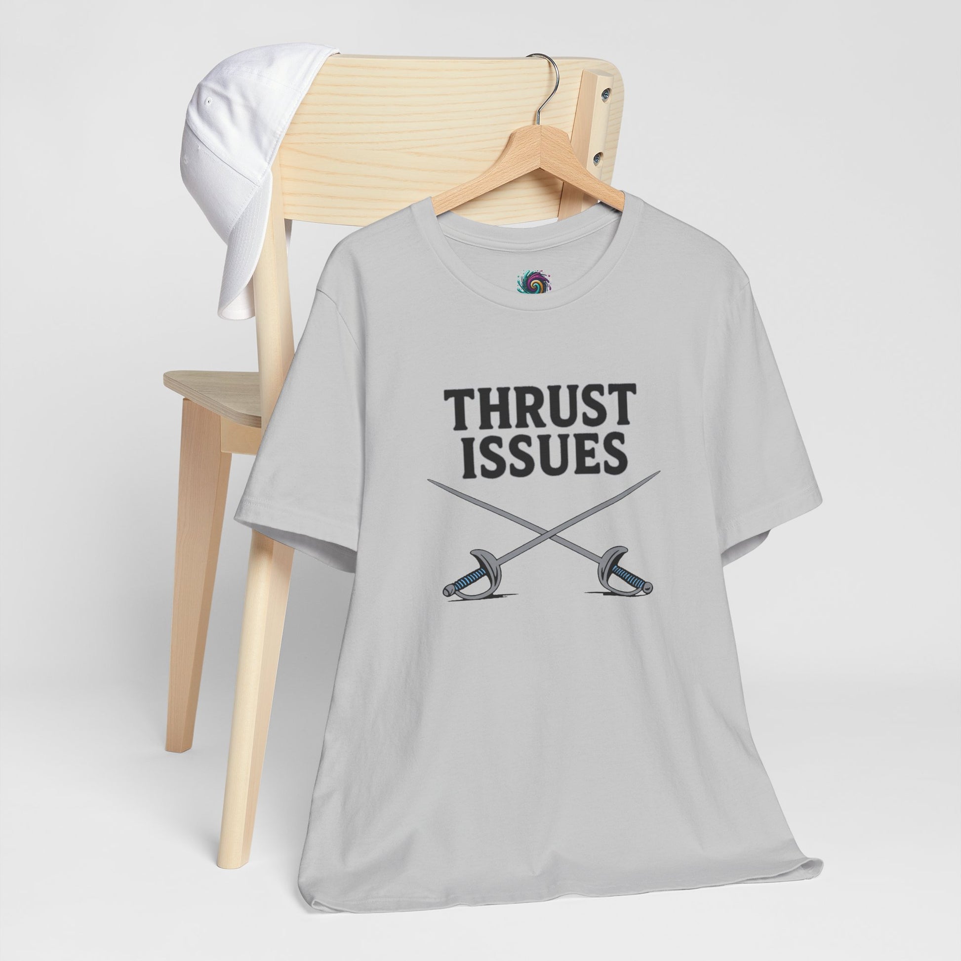 Thrust Issues Fencing T-Shirt – Funny Saber Shirt for Fencers & Pun Lovers