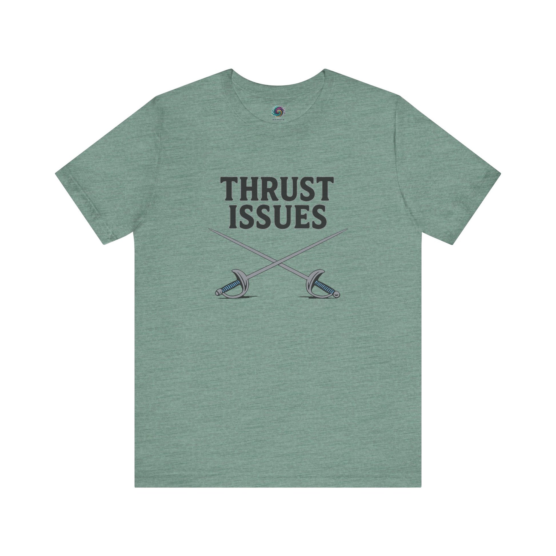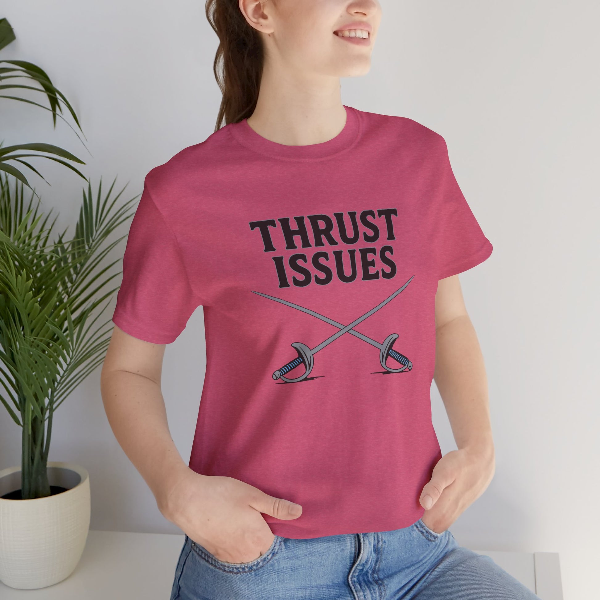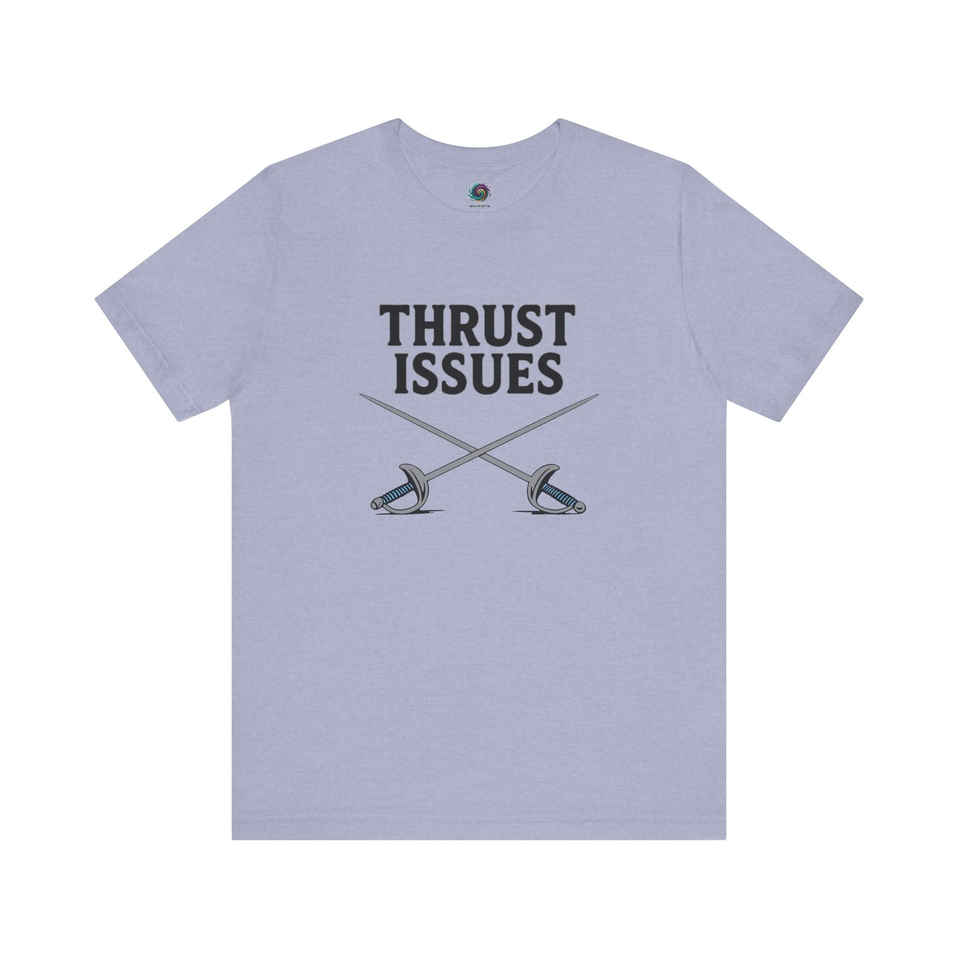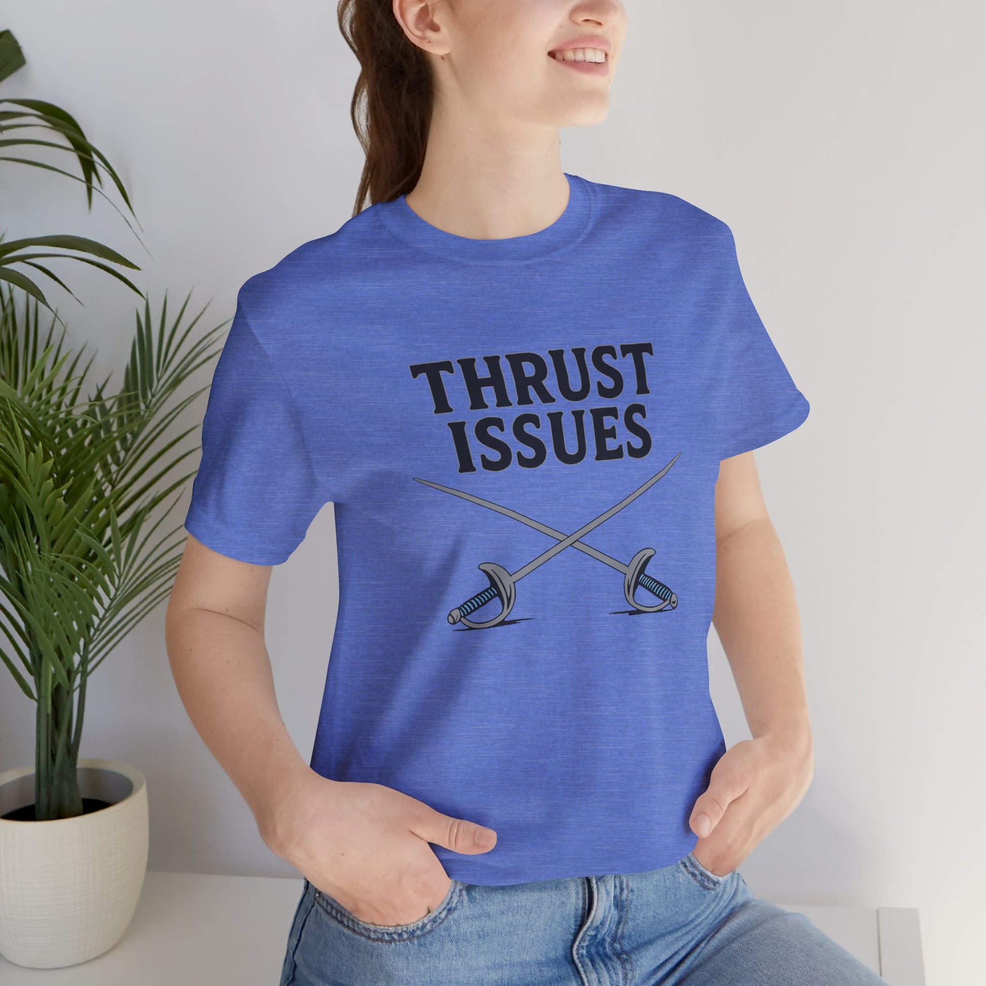 Thrust Issues Fencing T-Shirt – Funny Saber Shirt for Fencers & Pun Lovers