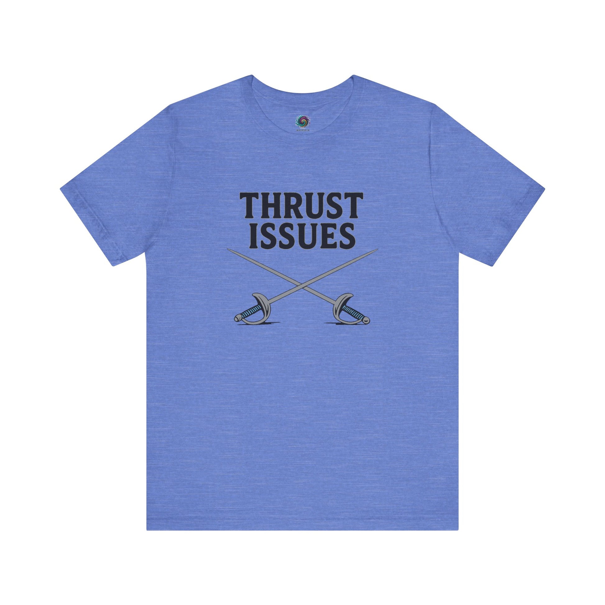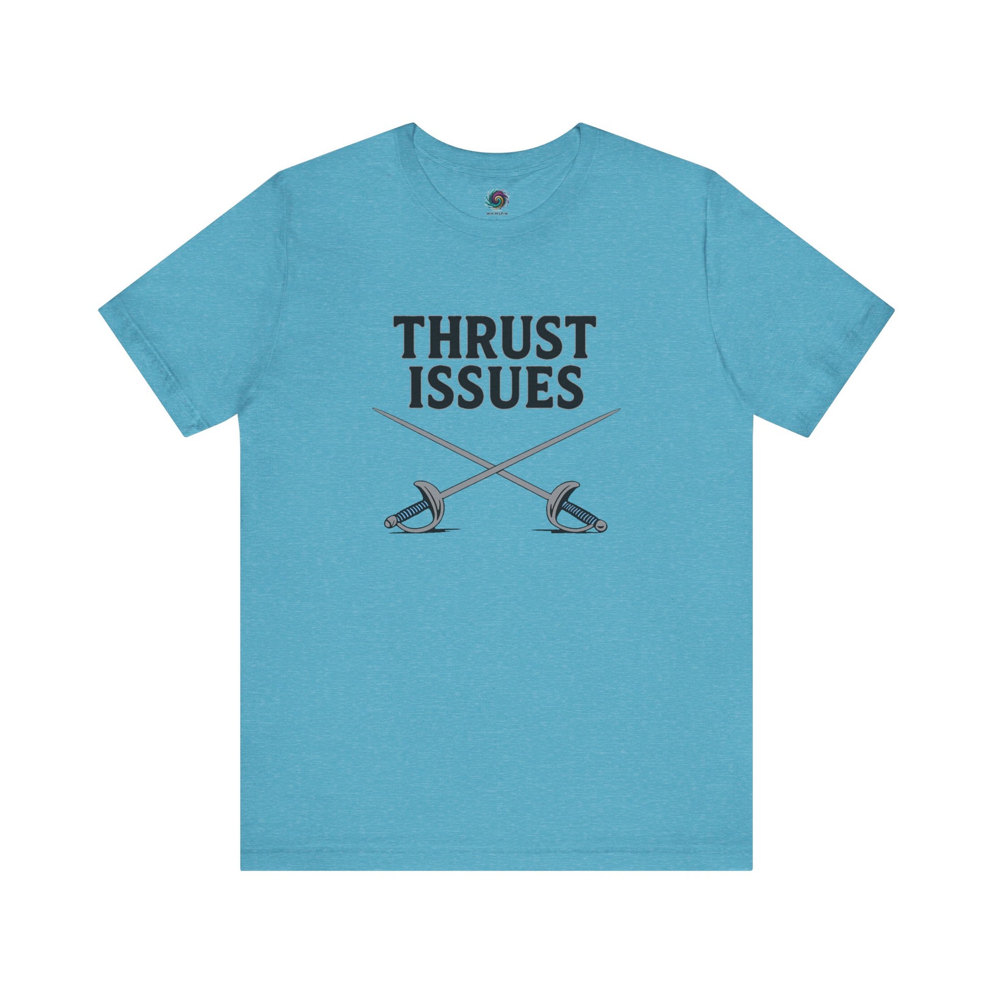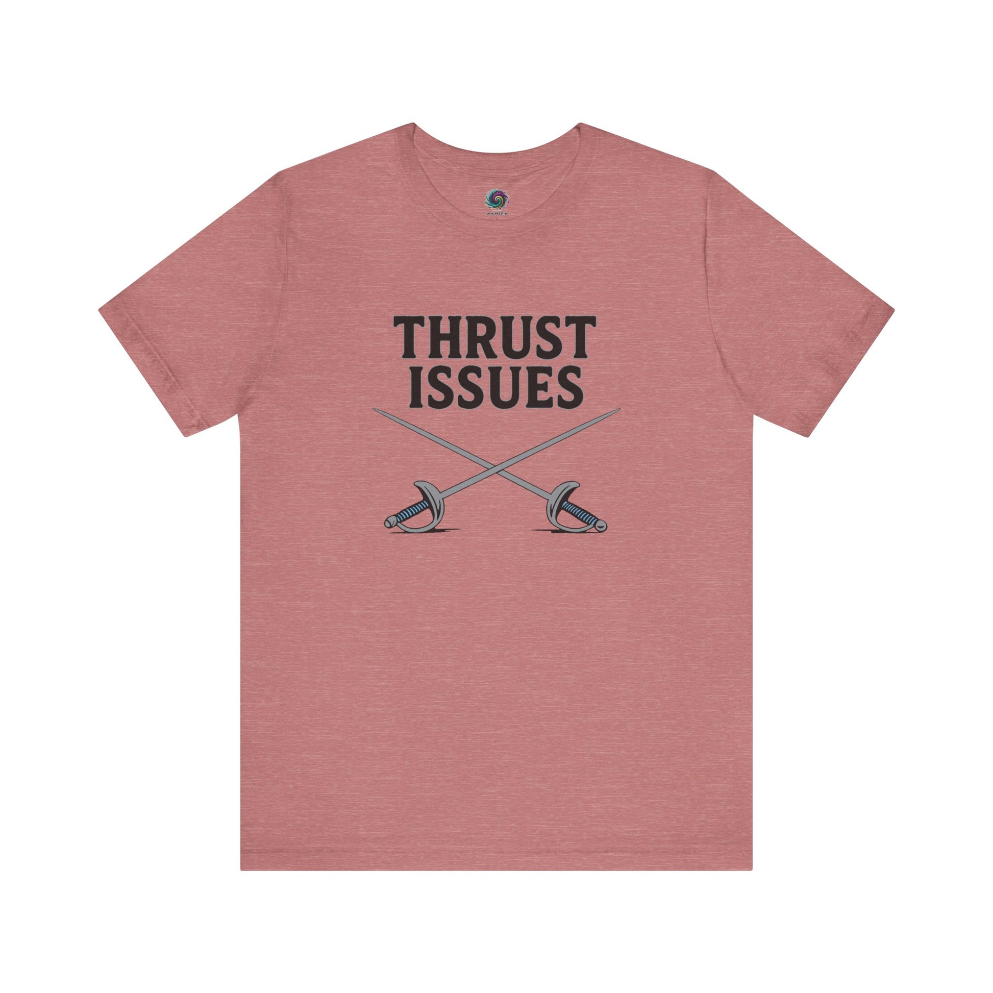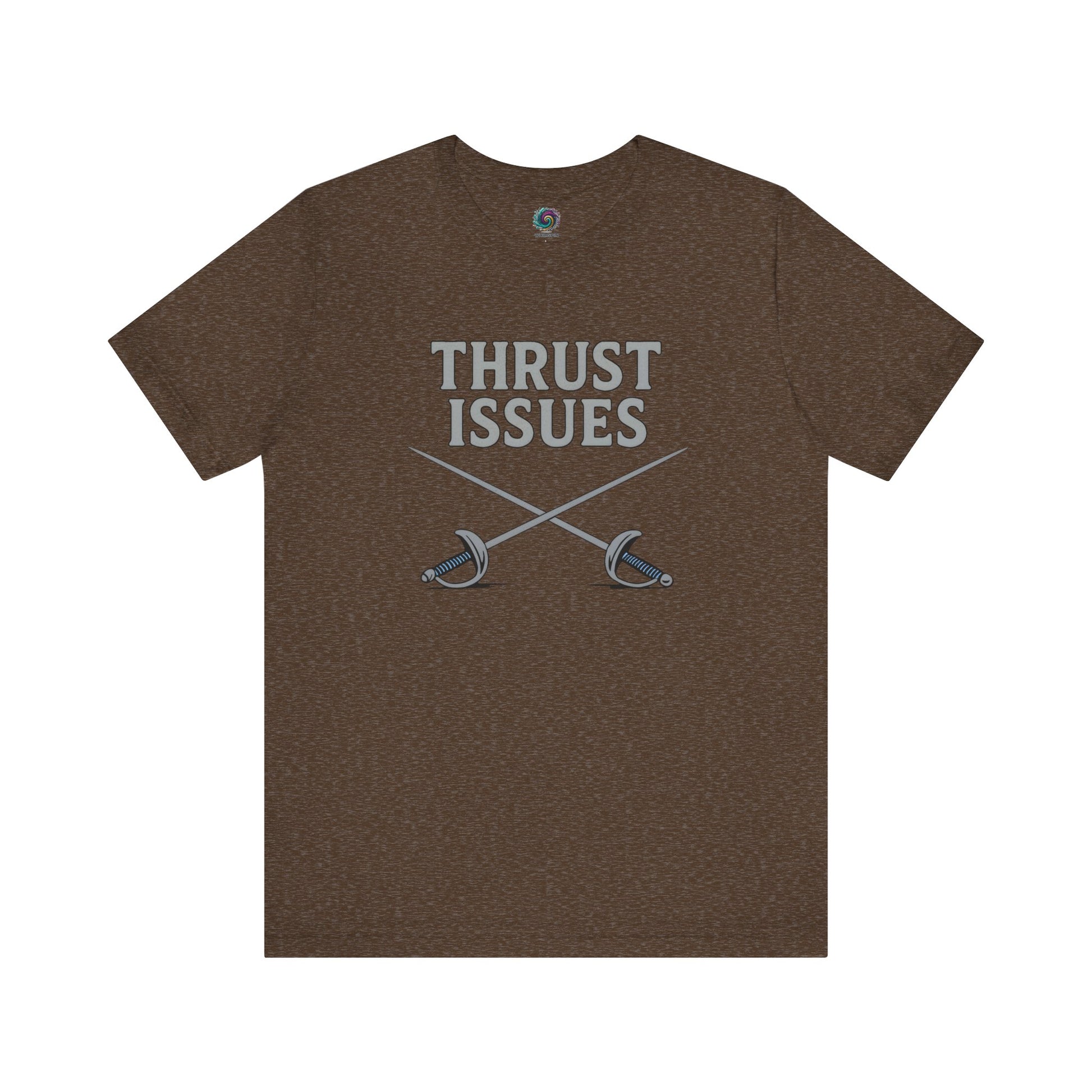 Thrust Issues Fencing T-Shirt – Funny Saber Shirt for Fencers & Pun Lovers