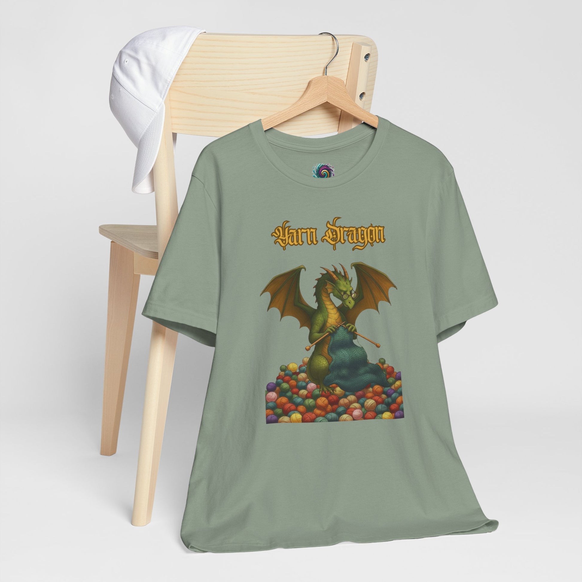 Every knitter has a bit of dragon energy — fiercely protective of their yarn, proud of their collection, and slightly reluctant to share. The Yarn Dragon T-Shirt captures that spirit perfectly. Featuring a green dragon perched atop a shimmering pile of colorful yarn balls, knitting needles in hand, this design celebrates the magic, humor, and quiet power of every crafter’s creative hoard.